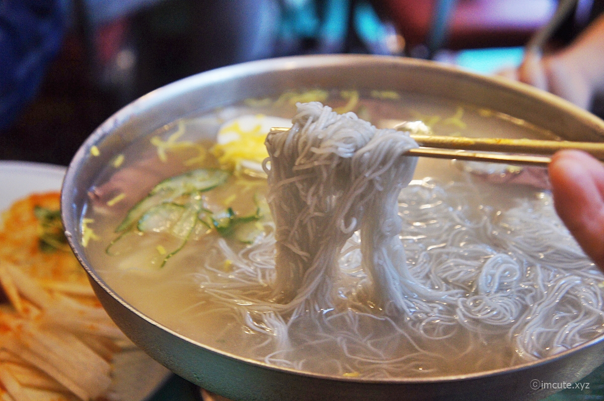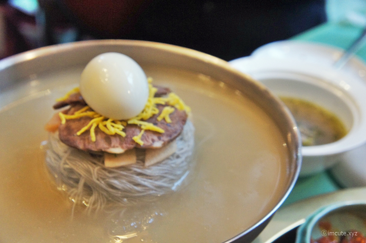 냉면입니다. 북조선이라는 글자를 달고있는데 실제로 북한에 가 본적은 당연히 없으니까... 여기서나마 간접적으로 즐기는데 국물맛이 되게 연하면서도 맛이 깊습니다. 이북 냉면을 취급하는 다른 식당의 냉면맛이 연상되었는데요, 능라도에서 먹은 그런 슴슴한 국물맛이었습니다.
