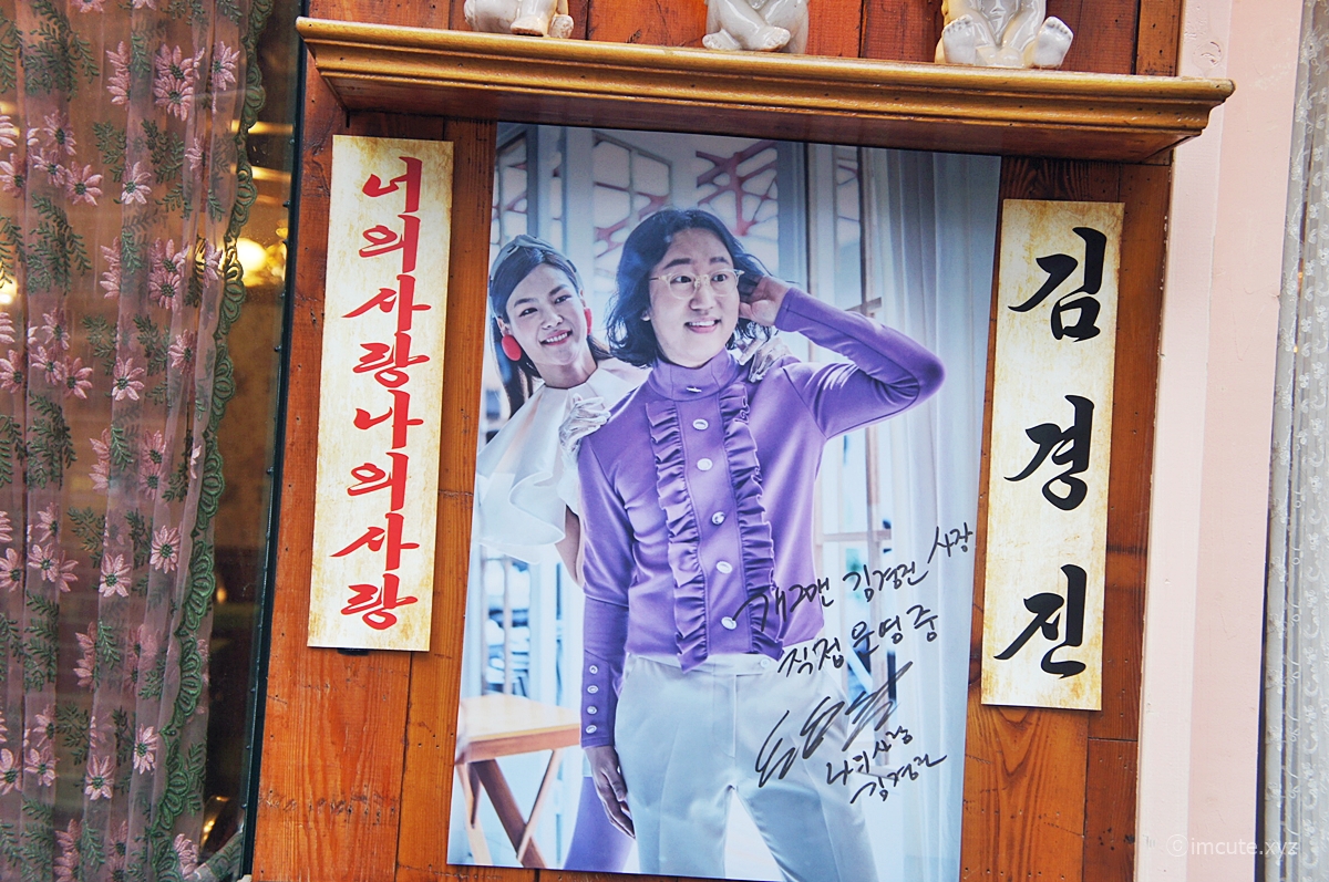 개그맨 김경진씨의 유행어, '너의사랑나의사랑' 김경진이라는 문구가 써있었고요 뒤쪽은 미모의 아내분이십니다. 얼마전 새신랑이 되신 분이라 두분 다 미모가 아주 물이 오르셨습니다. 사진에는 없지만 북조선랭면이라고 재미나게 써있는 입간판도 보였습니다.