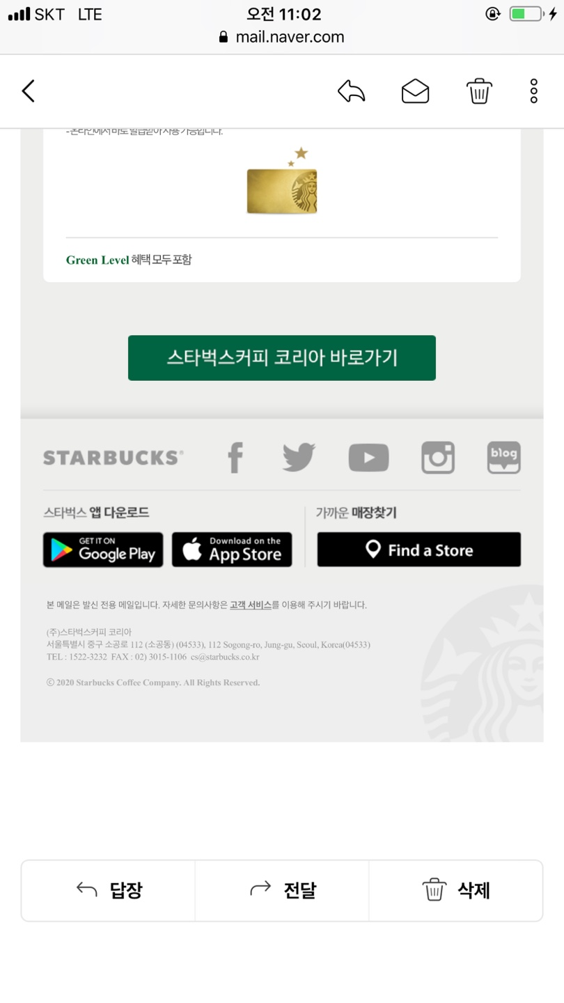 마이 스타벅스 리워드 메일, 스타벅스 골드레벨 혜택 연장하다