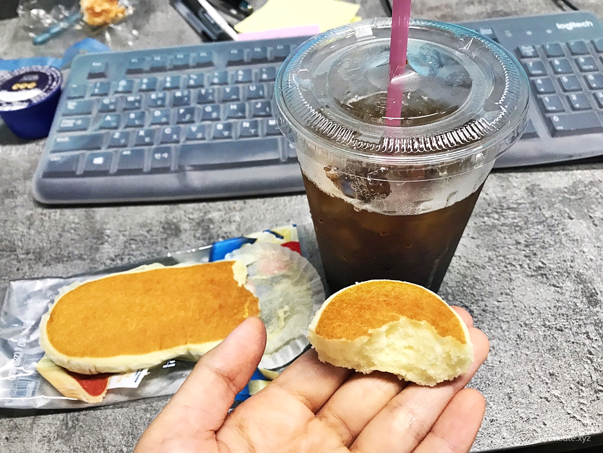 아이스 아메리카노랑 먹으니 궁합이 젤 좋습니다. 일단 단 요리가 메인이니, 하나도 안 달고 쮜인한 커피를 같이 들이켜야 하루가 제대로 시작되는거 같어요. 아침엔 카페인 안먹으면 졸린데 빈속에 커피만 먹으면 속이 놀란다는 핑계를 핑계삼아...요렇게 빵도 먹어줍니다. 입안에 넣으니 살살 녹는 감칠맛이 싸라있더군요. 편의점 음식에 뭐 이렇게 주절주절대..라고 하시겠지만 이건 혁신에 가까운 맛이라서 또 몇번 사먹을거 같어요.