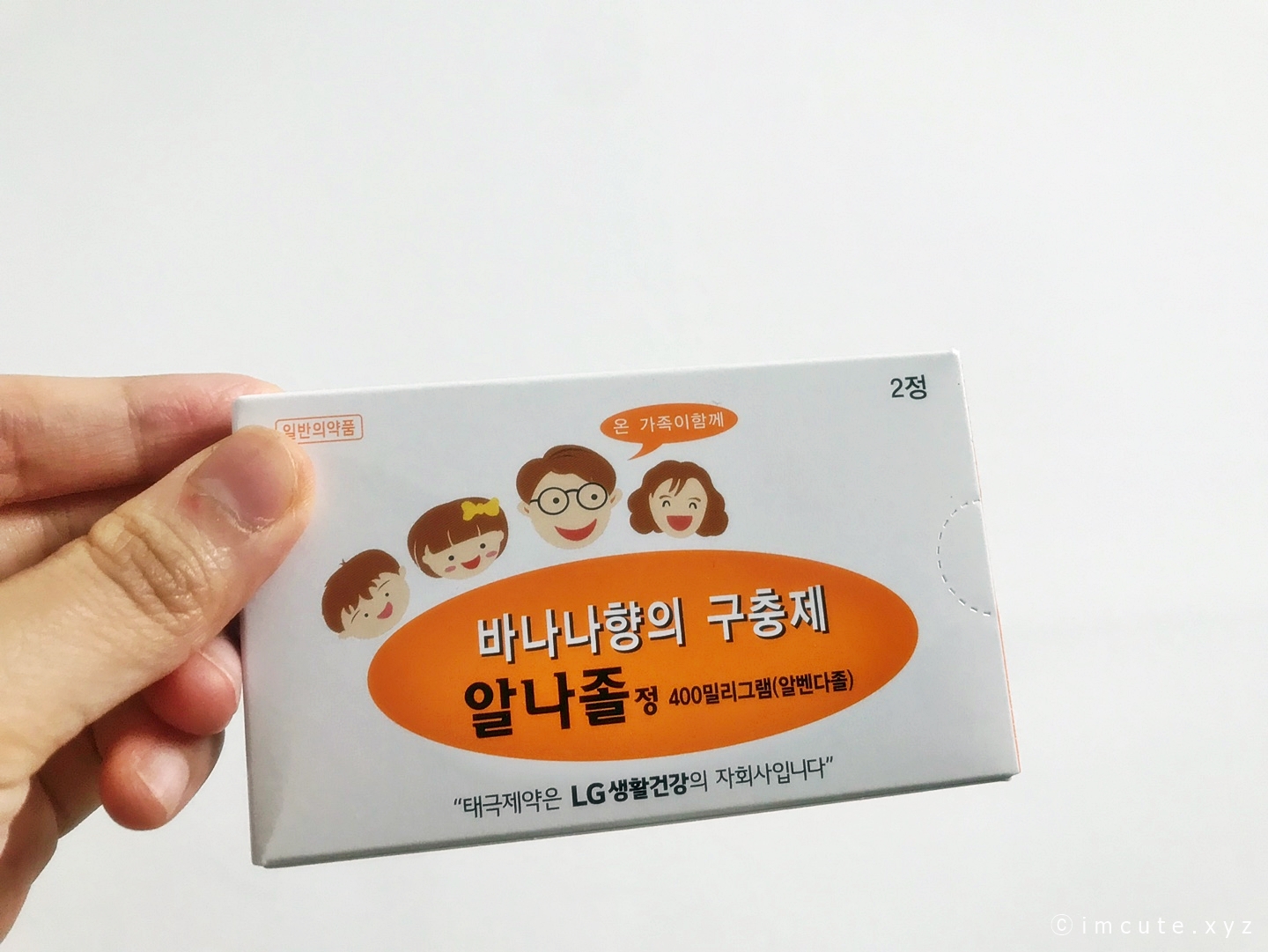 태극제약 알나졸정은 온가족이 함께 먹을수 있게끔, 400밀리그램 2정이 들어있습니다. 근데 저는 하나 먹고 또 먹을 요량이라서 넉넉하게 샀습니다. 왜냐면, 구충이 너무 걱정이 되었거든요. 실제로, 온가족이 먹으라고 알나졸정의 위에는 4인가구의 일러스트마저 엿보입니다. 마치 우리 엄마와 아빠를 연상시키는 듯한 귀요미한 디자인이더라고요. 그리고, 구충제는 씹어서 먹으라, 기름이랑 먹으면 지용성이라 더 흡수가 잘된다 등 여러가지 후기가 있었는데요 이거 먹을 때 기름은 없어가지고 그냥 씹어 먹었습니다. 근데, 맛이 역하지 않고 은근 먹을만 하더라고요. 실제로 바나나맛이었는지는 모르겠습니다, 살짝 과자 비슷한 맛이 나요. 달짝지근하고.