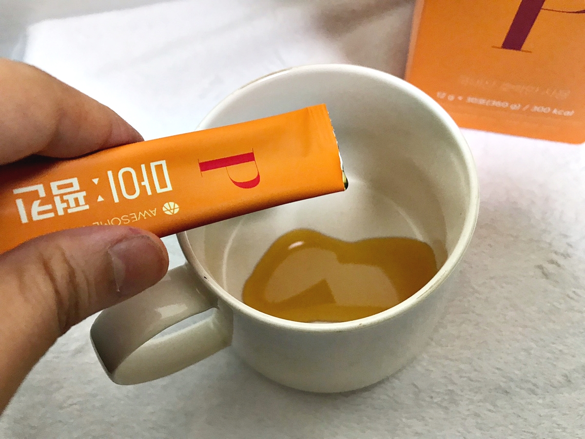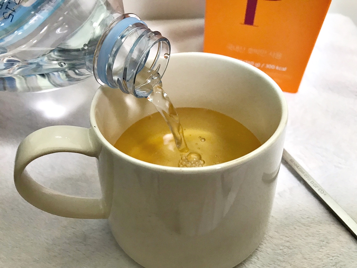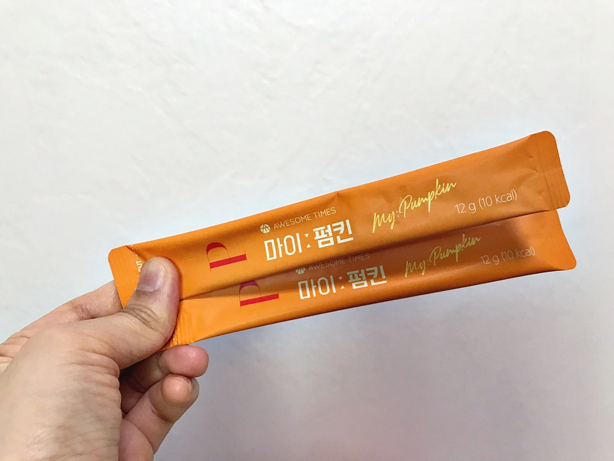 이렇게 스틱형으로 되어있어서 먹기 편하고요~ 물을 타먹으면 되는데 제가 우려내는건 너무 귀찮아서 그런지 이렇게 스틱형으로 간편하게 먹을수 있는 제품이 끌리더라고요. 그리고, 칼로리가 낮아서 자주 먹더라손 쳐도 살이 덜 찔 것 같아서 그런 점도 굉장히 마음에 들었습니다. 늙은 호박 붓기 관리하기 좋은 음식이라는거 알았기 때문에 이제 자주 먹어주려고 합니다.