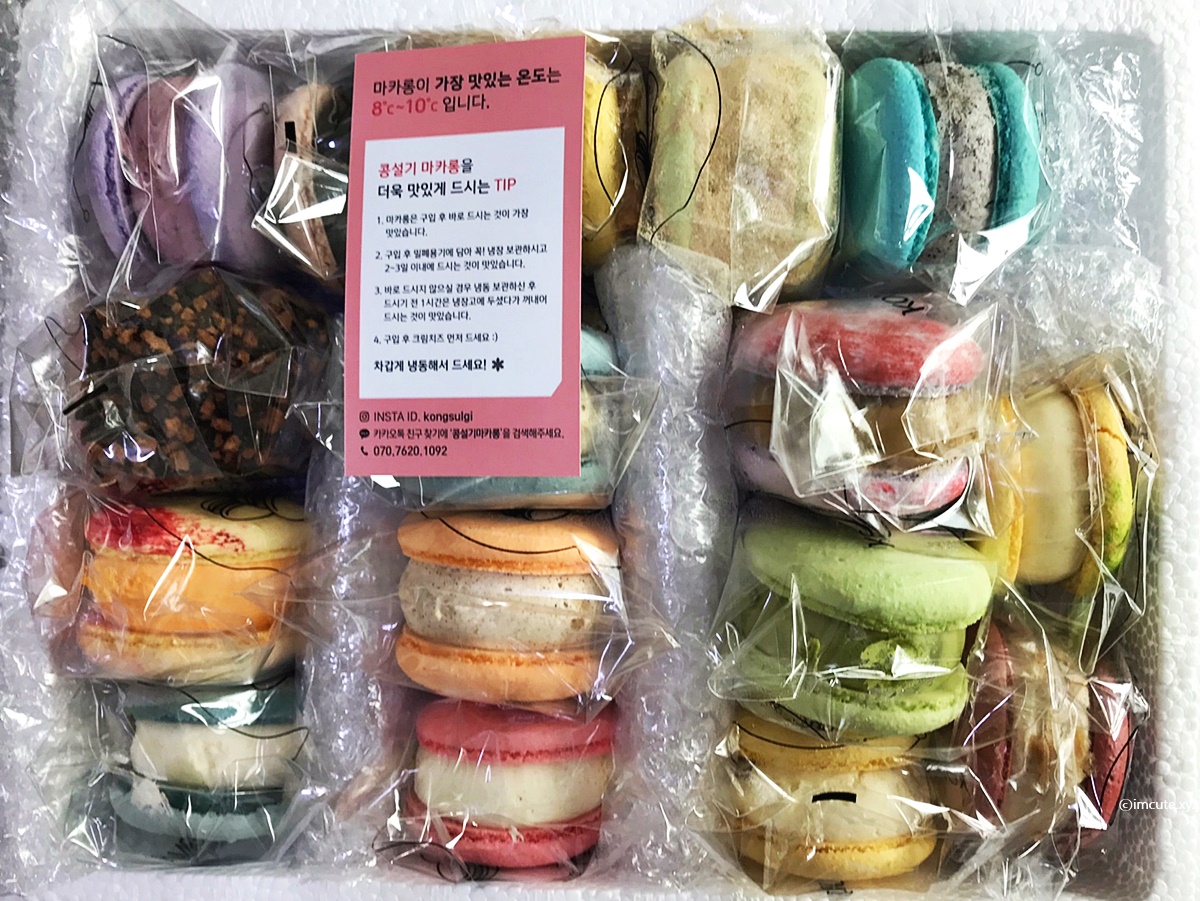 부평 콩설기에서 이름모를 마카롱을 많이많이 구매한 현장입니다! 여러가지 맛 다 구매하다 보면 이런 행복한 불상사가..껄껄. 아무래도 인기가 많은 곳이다보니 배송 서비스가 잘 되어있는 모양입니다. 보시다시피, 콩설기 마카롱은 이렇게 안전하게 배송까지 다 해주시니 멀리서도 즐길수가 있습니다. (본 사진은, 서울까지 배송을 시킨 현장입니다)