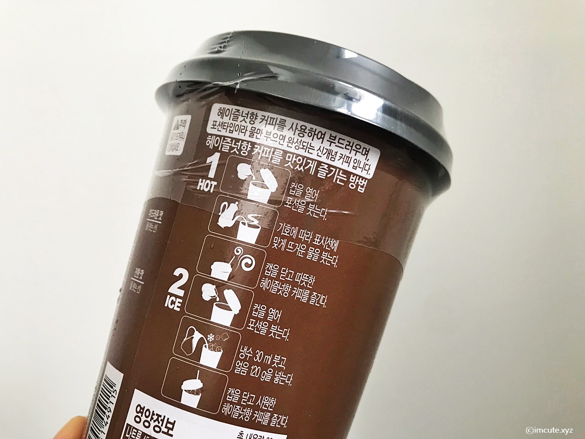 컵을 열어 포션을 붓는 핫의형태로, 얼음과 냉수를 같이 부어먹는 시원한 아이스 헤이즐넛향 카페로도 즐기실 수가 있습니다.