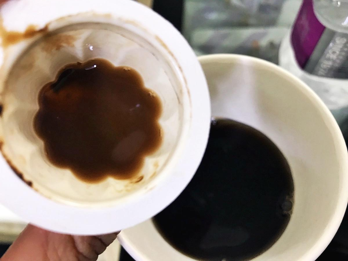 쪼르륵~ 이렇게 물에 타서 먹으면 되니 세상 간단하고, 뭐 따로 저을 필요도 없더라고요. 그러니 머들러같은 것도 안 들어있는 거겠죠. 커피의 기술력! 대단합니다.