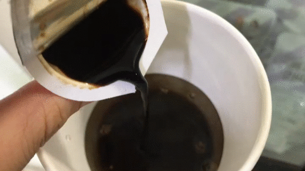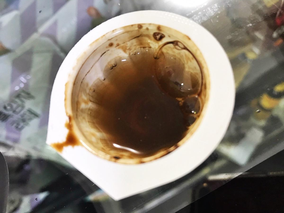 쪼르륵~ 이렇게 물에 타서 먹으면 되니 세상 간단하고, 뭐 따로 저을 필요도 없더라고요. 그러니 머들러같은 것도 안 들어있는 거겠죠. 커피의 기술력! 대단합니다.