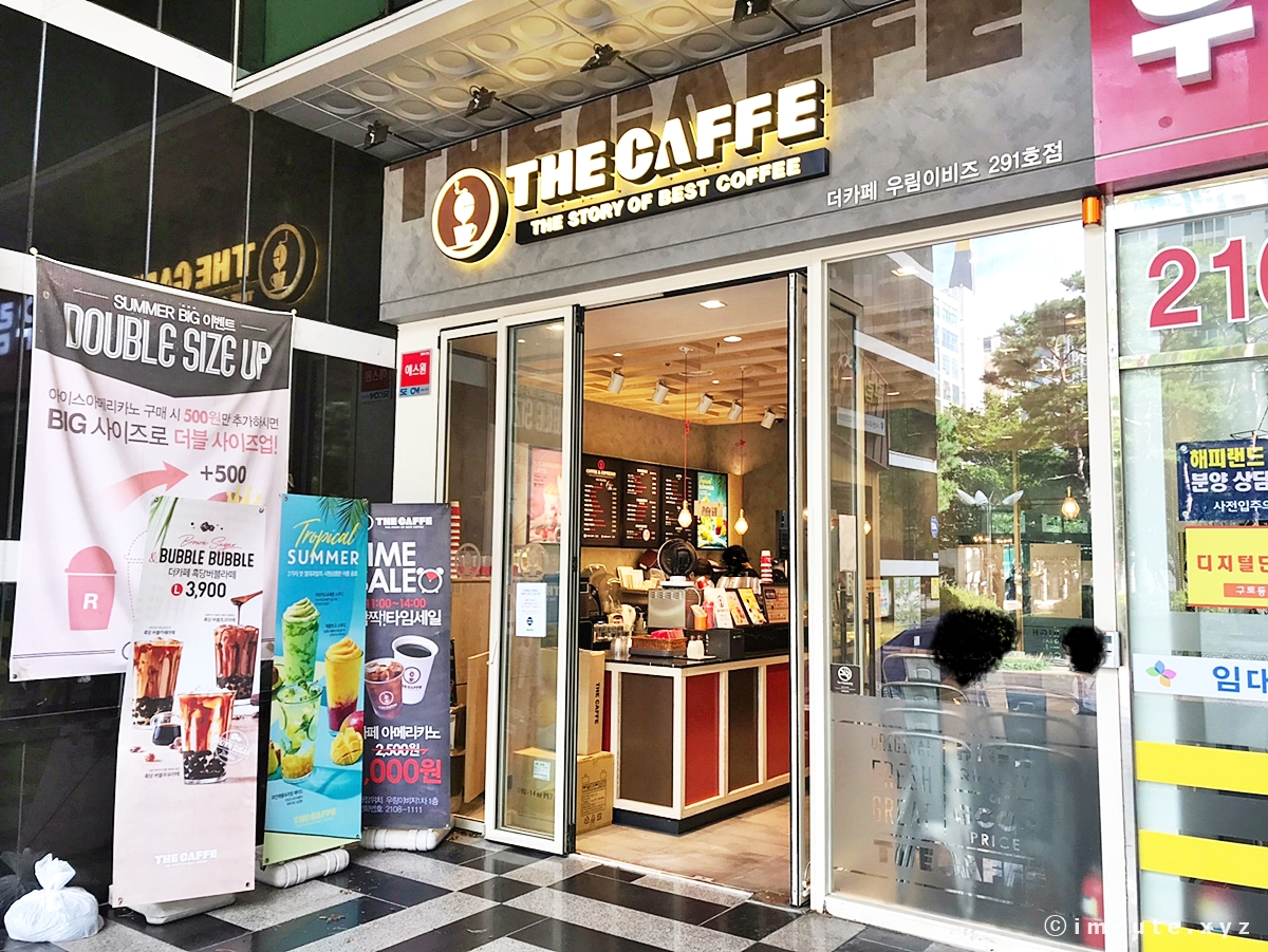 더카페 우림이비즈의 간판 & 입간판입니다. 찾아오기는 아주 쉬울 것입니다. 왜냐면 딱 눈에 띄는, 우림이비즈 건물 1층에 있습니다. 우림이비즈 1차 1층에 있는 것입니다. (같은 이름을 가진 빌딩이 여러 곳입니다)