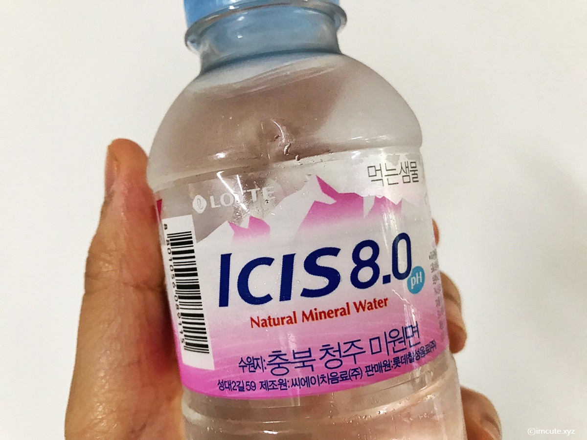 먹는샘물 아이시스 8.0 pH Natural Mineral Water의 수원지는 "충북 청주 미원면"이었습니다. 성대 2길 59 제조원의 주소까지 정확히 명시되어 있었고요 씨에이치음료(주) 판매원은 롯데칠성음료(주)입니다.