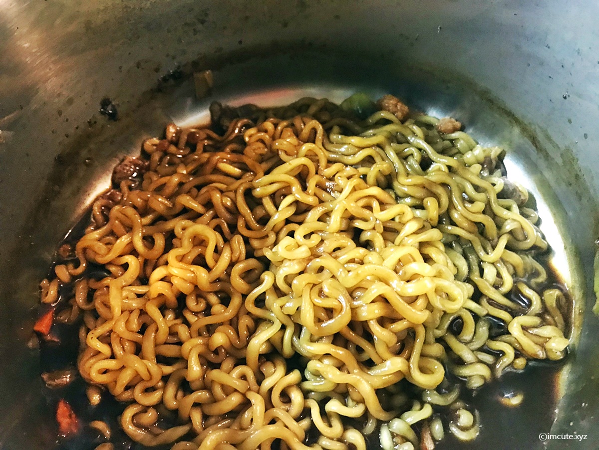 면이 얼추 익었습니다. 밤에 야식으로 먹는거라 힘들어 죽겠어서...사진 퀄이 좀 안좋네요. 이해바랍니다.