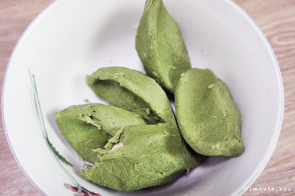 송편은 이런 모습입니다. 손으로 막 빚은거 같은 예쁜 모양이 엿보이고 속은 앙금으로 가득 차있습니다. 흰색이어요.