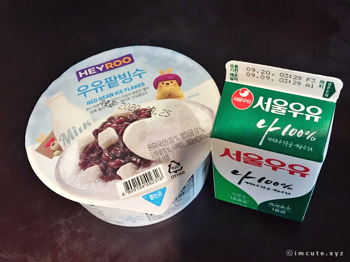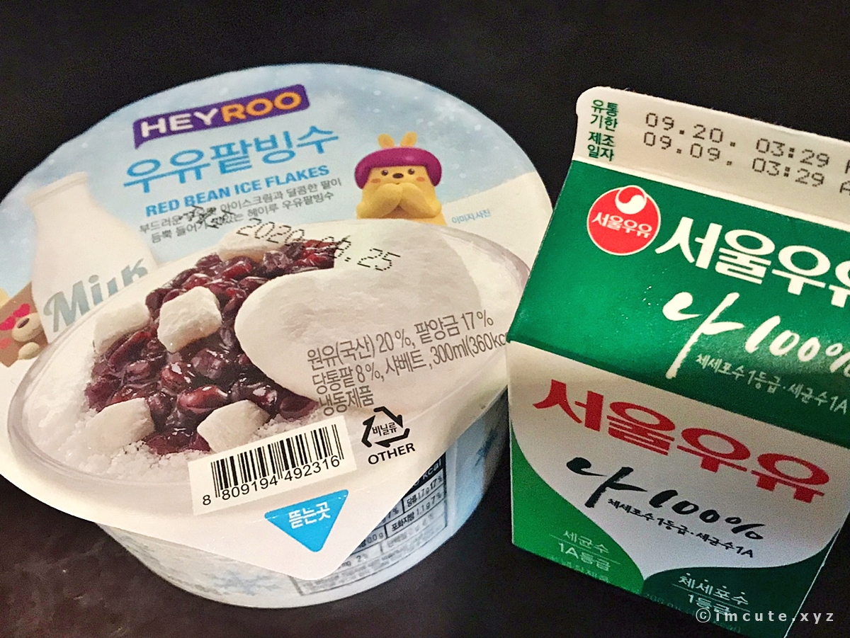 그래서 이렇게 우유까지 하나 더 준비했습니다~ 제조년월은 2020년 8월으로 아주따끈따끈한 것이었고요 원유와 팥앙금 그리고 당통팥과 샤베트가 들어있어서 아주 매력적이었던 우유팥빙수 소개해드립니다.