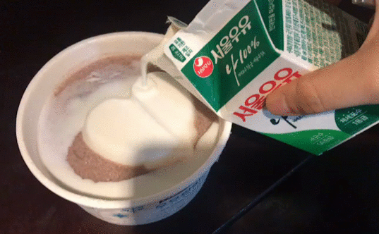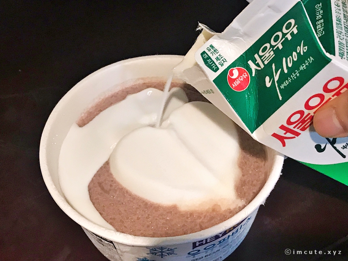 편의점 팥빙수에 우유를 넣어 먹으면 맛있다