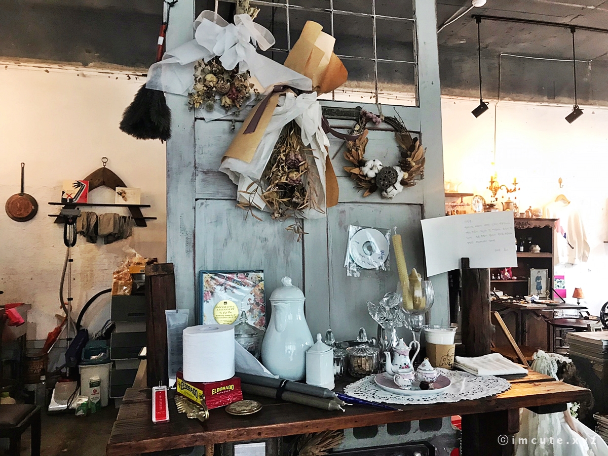 미싱도 있고, 앤티크한 카페트가 있는데요 통유리 너머로 햇살이 촤르르 떨어지는게 분위기가 대박이었습니다. 말린 꽃도 너무 이뻤어요. 제가 갔을 땐 손님이 없었는데 점점 손님들이 들어오더라고요.