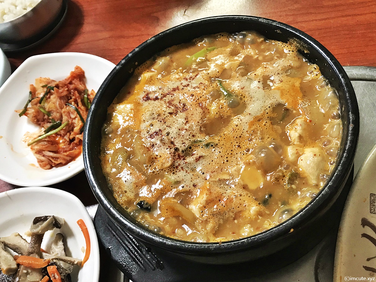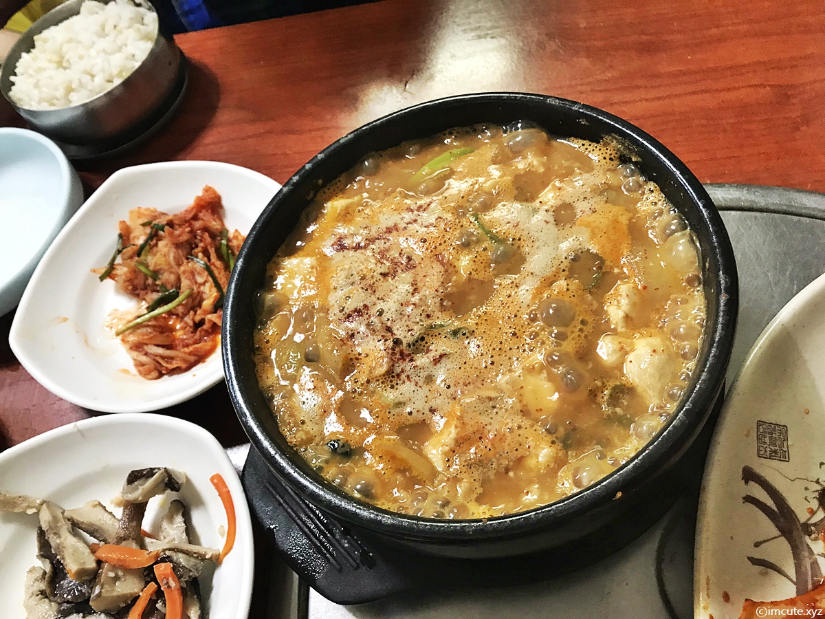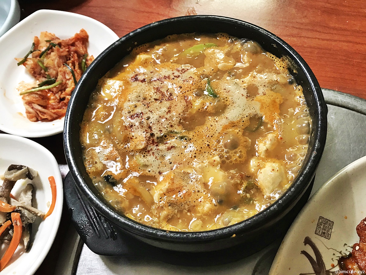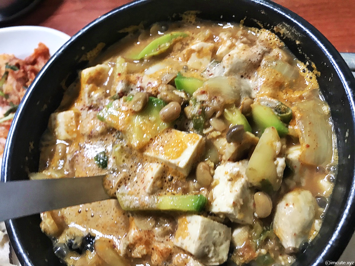 2인분으로 나온거라 뚝배기가 좀 컸어요. 국자를 가져다 주시는데요 안에 청국장 건더기도 많고 냄새가 심하지 않게 딱 적당한 맛이라 좋았어요.