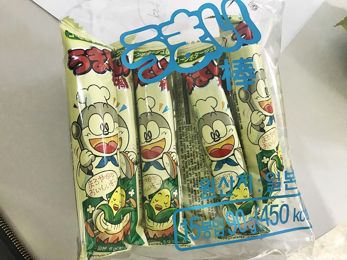 한손에 쏙 감기는 봉 형태의 우마이봉입니다. 우마이는 일본말로 맛있다는 뜻입니다.