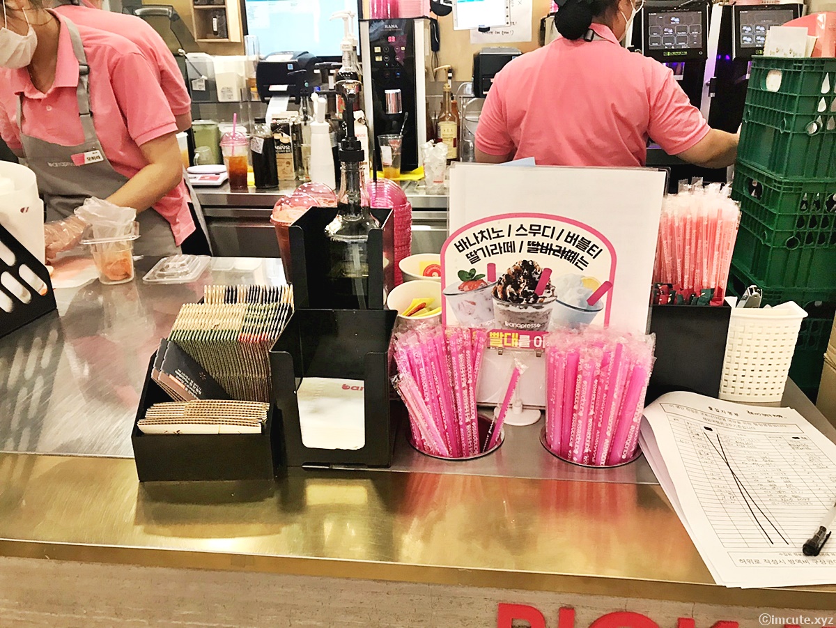 보니까 바나치노, 스무디, 버블티, 딸기라떼 같은것도 먹을수 있었고, 일정메뉴에선 굵은빨대를 이용해야 하더라고요. 그래야 내용물들이 쏙쏙 잘 올라오니 말이죠~
