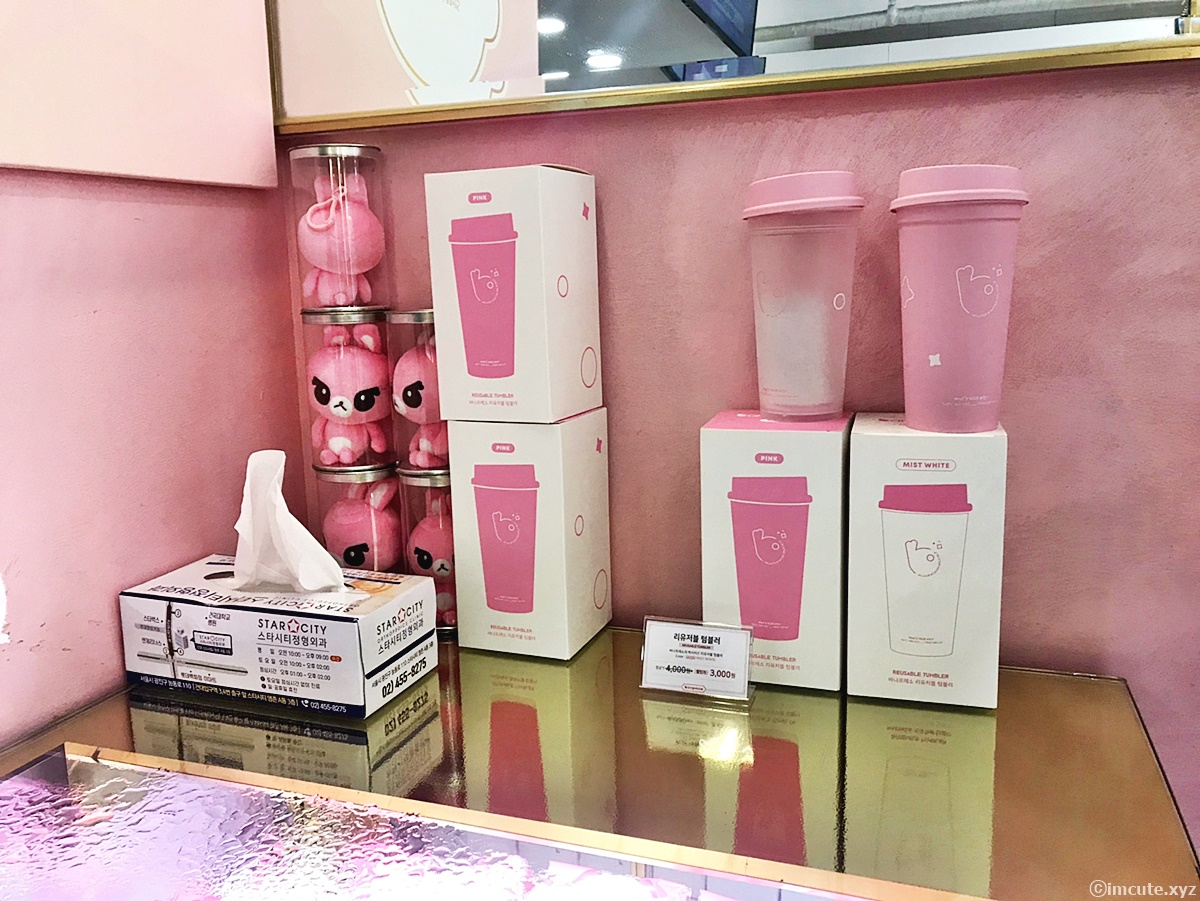 핑크빛 텀블러까지 팔고 있어요. 리유저블 텀블러에 음료를 마심으로서 환경을 생각하는 착한 건대 맛집탐방러가 되기위해 이렇게 텀블러도 보고! 귀여워서 자꾸 사용하고 싶을거 같아요