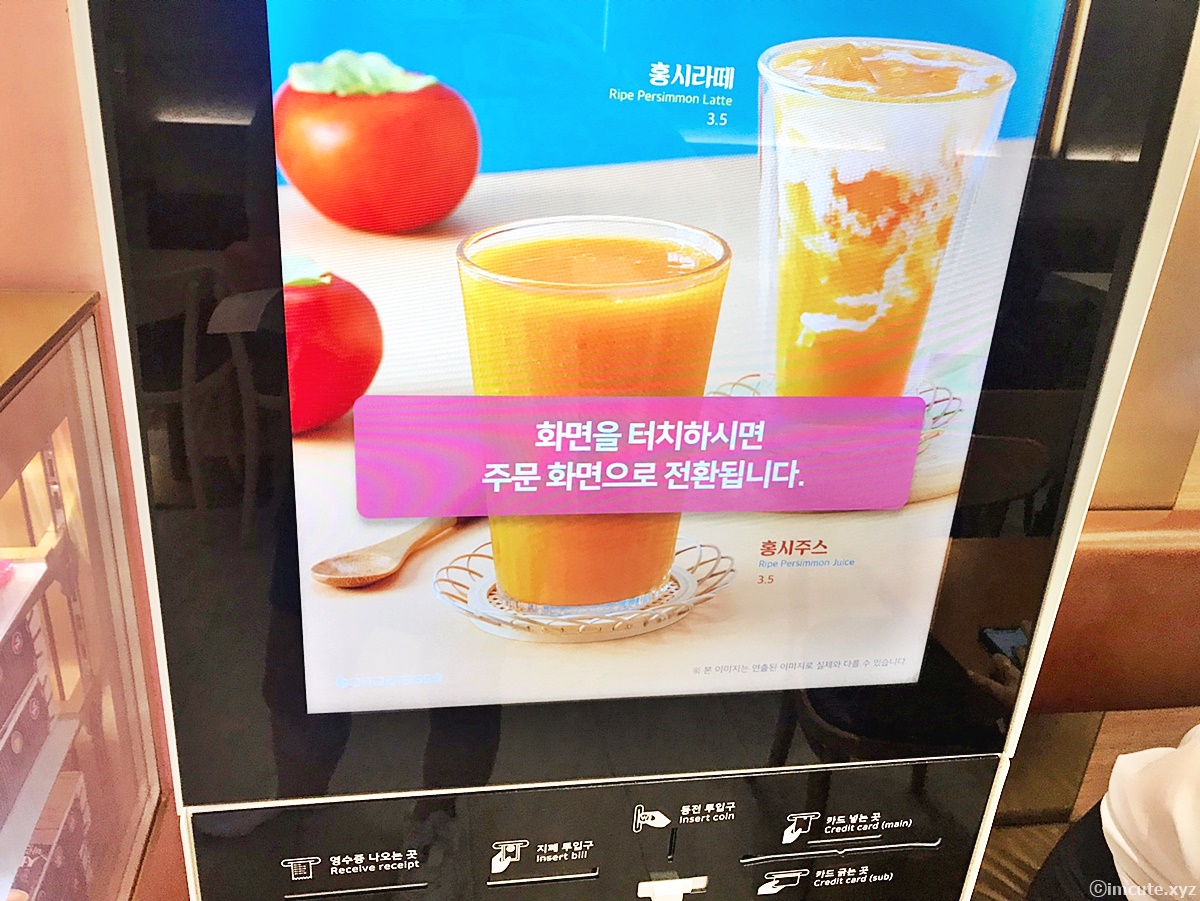 기계로 주문할수 있어서 쉬웠어요 화면을 터치하면 마실거리가 나옵니다.