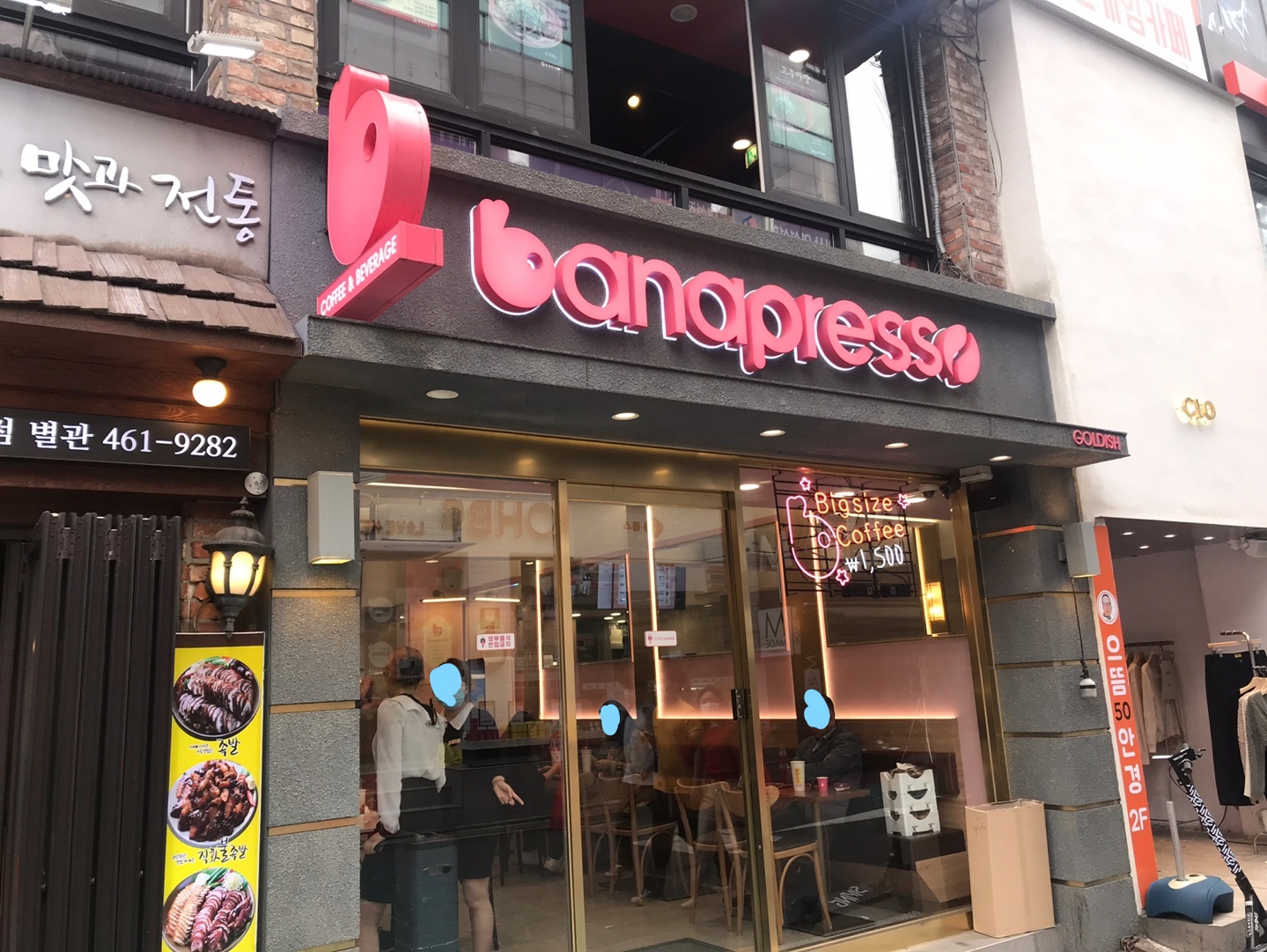 저는 이곳저곳 맛있는거 많이 먹으러 다니는편인데요, 이 근처에서 볼일이 있어서 온김에 카페투어부터 해보고싶다 생각이 들더라고요. 주위를 둘러본 결과 바나프레소라는 귀여운 핑크빛 카페가 있었어요.