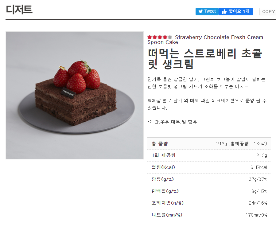 투썸플레이스 케이크중에서 떠먹는 스트로베리 초콜릿 생크림 먹어봤어요