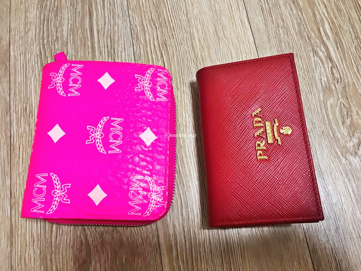 원래 쓰던 MCM지갑과 비교해봤습니다. 이것도 제 생일선물로 받은거네요! 지갑이랑 카드지갑 이렇게 다 튀는 색을 선호한답니다.