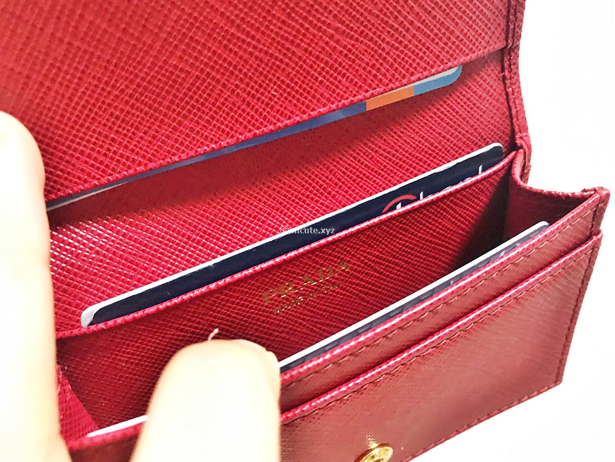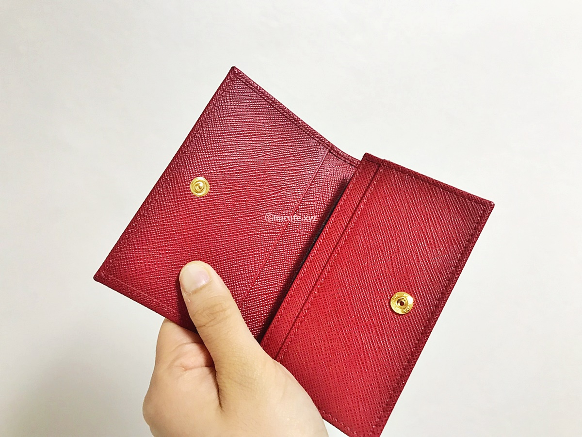 프라다 카드지갑 레드! 사피아노 재질이 튼튼하고 확실히 명품이라는것이 느껴진다, 앞으로 오래오래 쓸듯~