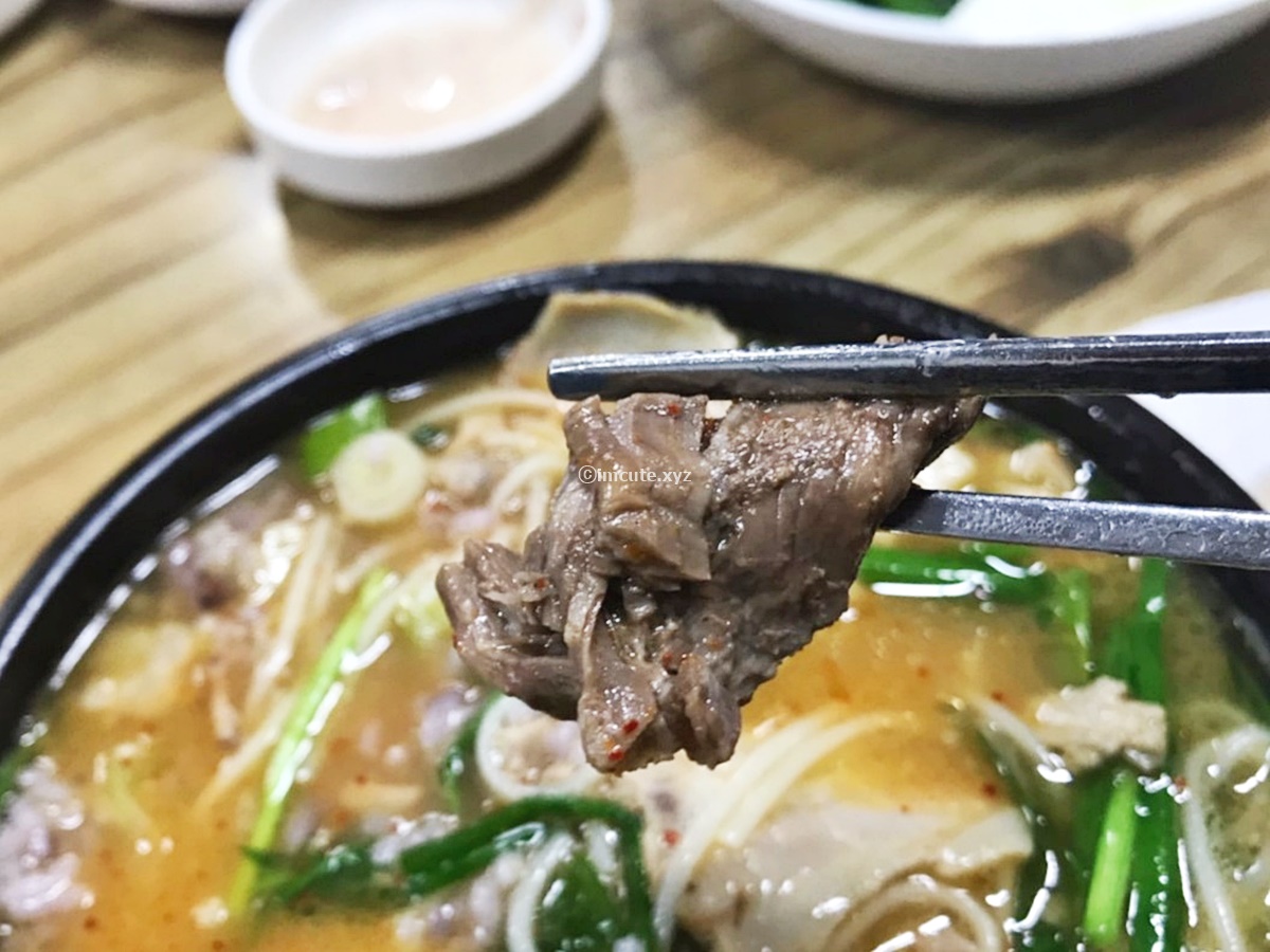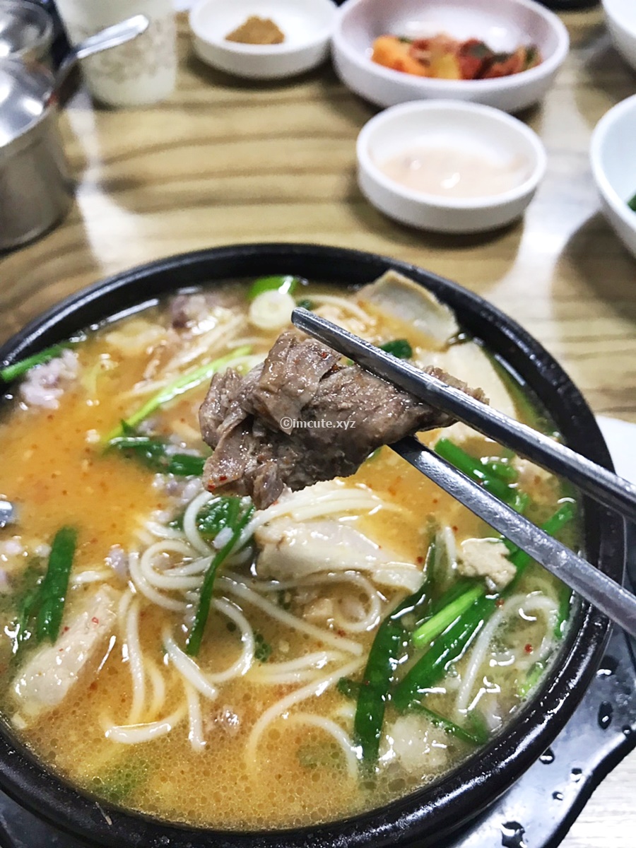 소면이랑 돼지고기가 한가득이라 먹는 식감이 엄청납니다. 국물이 비리지 않아서 더 좋았고요 부추를 함뿍 넣어서 먹으니 채소도 많이 먹게되어 건강을 챙기는 기분이 들었습니다. 뚝배기에 주셔서 그런지 보글보글 끓는 이느낌에 기분이 좋아졌습니다.