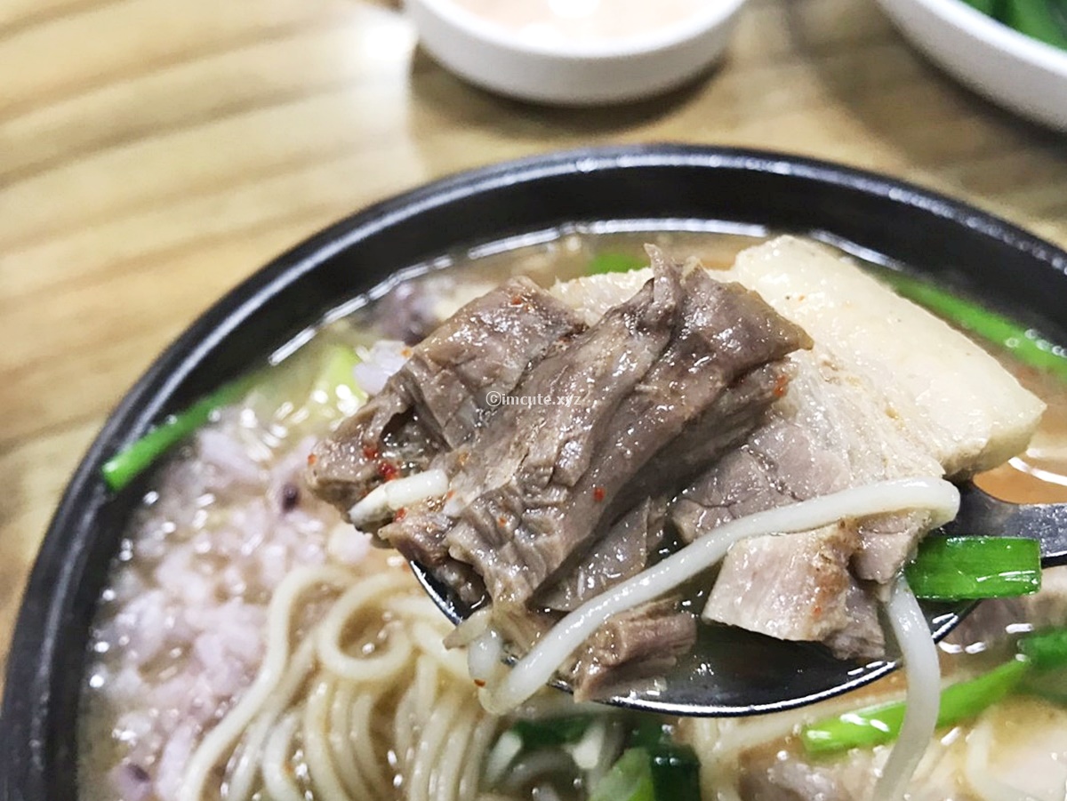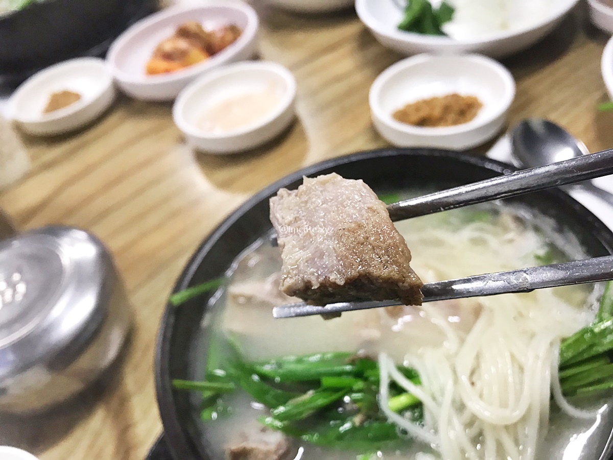 소면이랑 부추 그리고 고기의 만남이 어우러져 환상의 하모니를 내고 김치랑 같이 먹으니까 너무 좋았습니다. 이런 곳에 오면 김치퀄리티부터 살피는데 일단 김치가 넘나 맛이 잘 들었고요, 고기도 무슨 보쌈고기같이 보들보들하더라고요. 돼지국밥 맛집을 일부러 찾아오는 사람 심리가 이런거구나 느꼈다니까요, 메인도 메인이지만 이 조화가 다 했으니 말이죠.