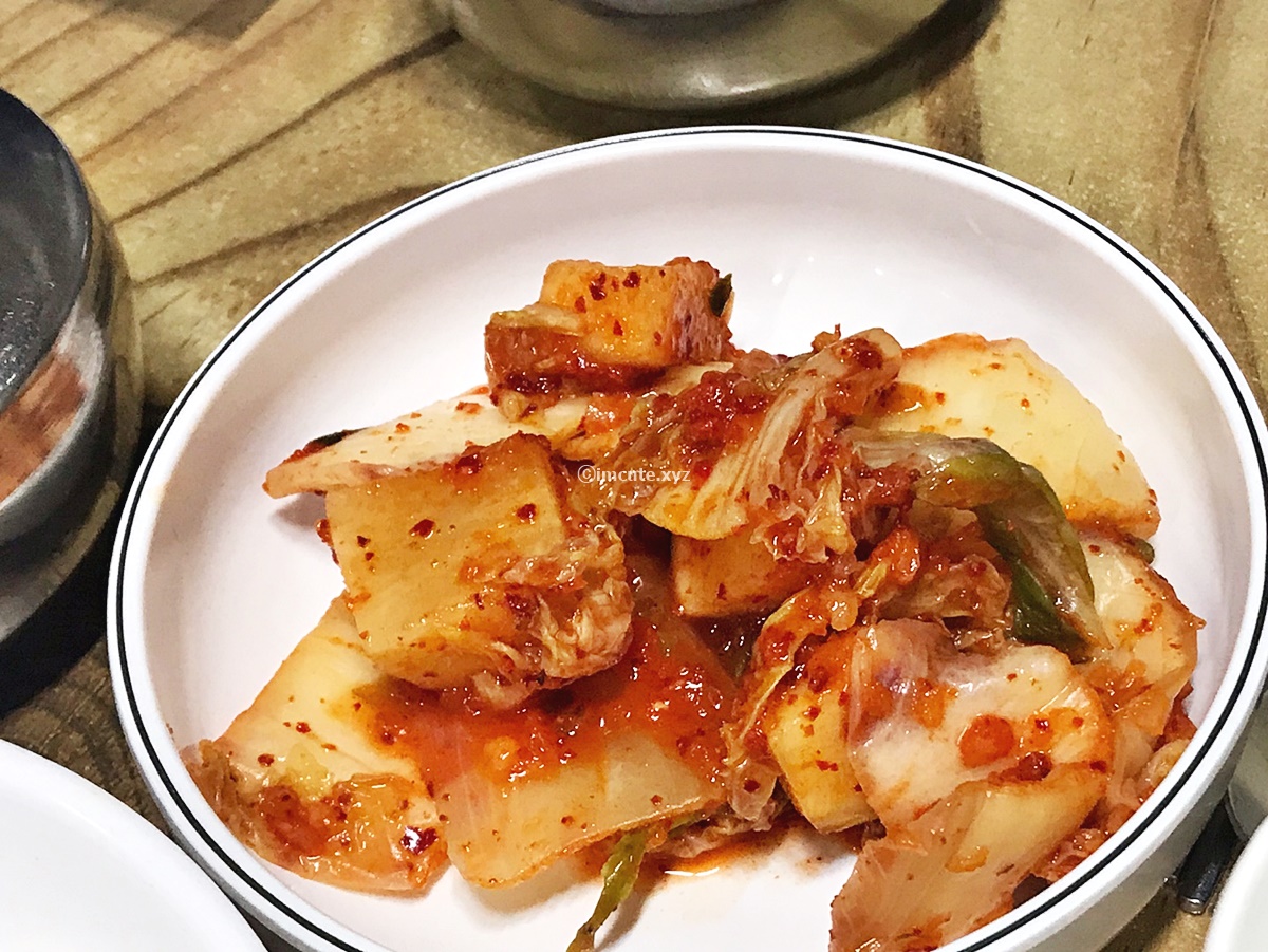 깍두기는 김치랑 같이 담아주십니다. 매콤하게 맛이 으찌나 잘 들었던지 모르겠는데요 그릇위에 소담스럽게 담아져있는 모양새가 나만 삼촌미소 지어지는거 아닌가 몰라요. 확실히 김치맛에 까다로운 다른 지인들도 엄청 흡입하시는거 보니 맛이 잘 들은것은 틀림없습니다