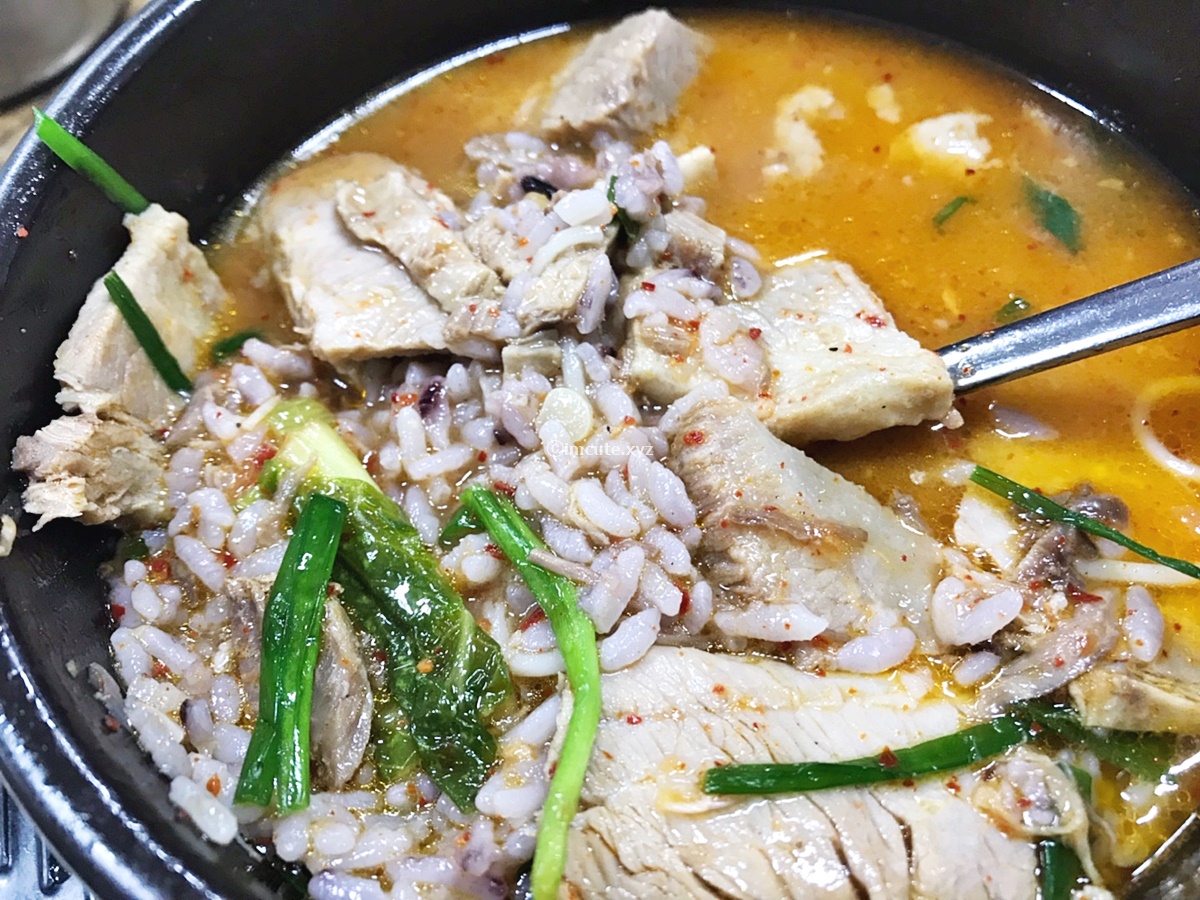 밥은 한 그릇 다 넣어주고, 깍두기 국물과 새우젓 그리고 다대기로 맵게 국물을 희석해 봅니다. 저는 이런식으로 순대국 먹듯이 먹는게 맛나더라고요.