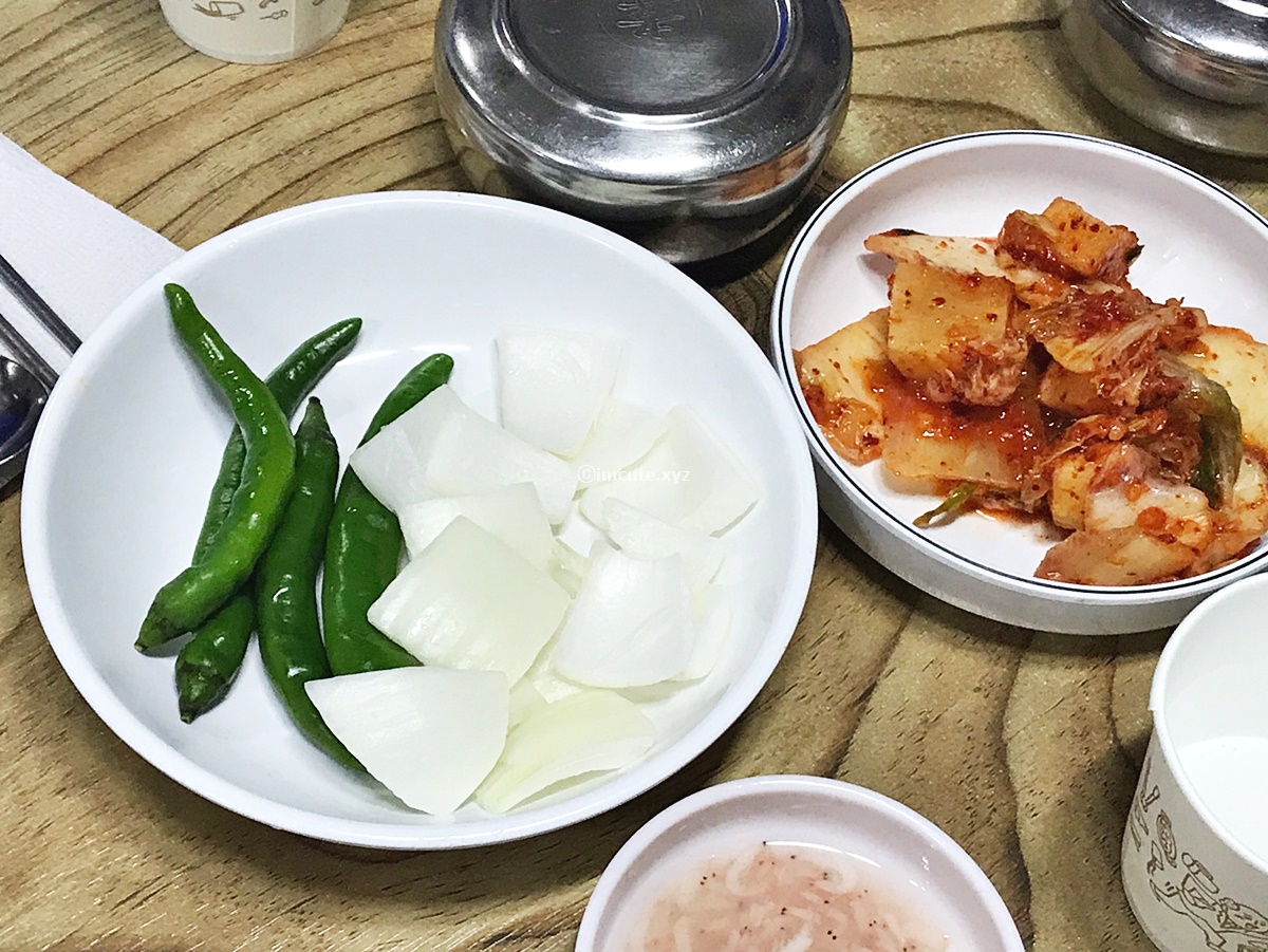 만원 이내의 가격이지만 이렇게 반찬도 실하게 나옵니다. 돼지국밥 하면 같이나오는 양파랑 고추죠!