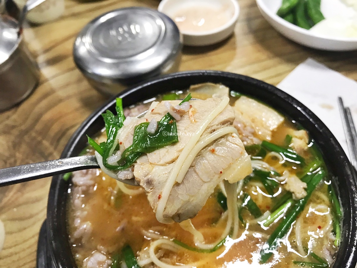 소면이랑 부추 그리고 고기의 만남이 어우러져 환상의 하모니를 내고 김치랑 같이 먹으니까 너무 좋았습니다. 이런 곳에 오면 김치퀄리티부터 살피는데 일단 김치가 넘나 맛이 잘 들었고요, 고기도 무슨 보쌈고기같이 보들보들하더라고요. 돼지국밥 맛집을 일부러 찾아오는 사람 심리가 이런거구나 느꼈다니까요, 메인도 메인이지만 이 조화가 다 했으니 말이죠.