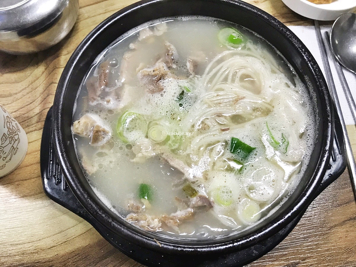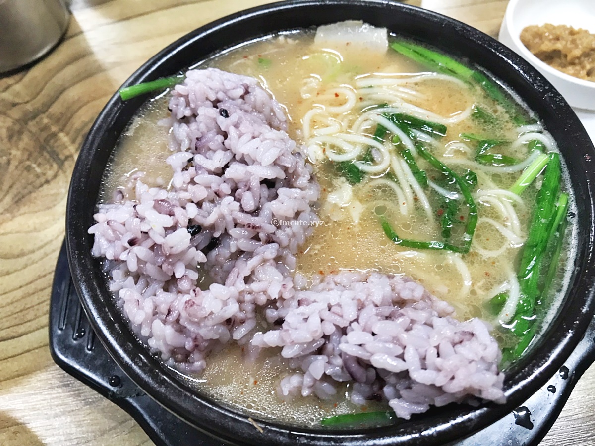 소면이랑 돼지고기가 한가득이라 먹는 식감이 엄청납니다. 국물이 비리지 않아서 더 좋았고요 부추를 함뿍 넣어서 먹으니 채소도 많이 먹게되어 건강을 챙기는 기분이 들었습니다. 뚝배기에 주셔서 그런지 보글보글 끓는 이느낌에 기분이 좋아졌습니다.