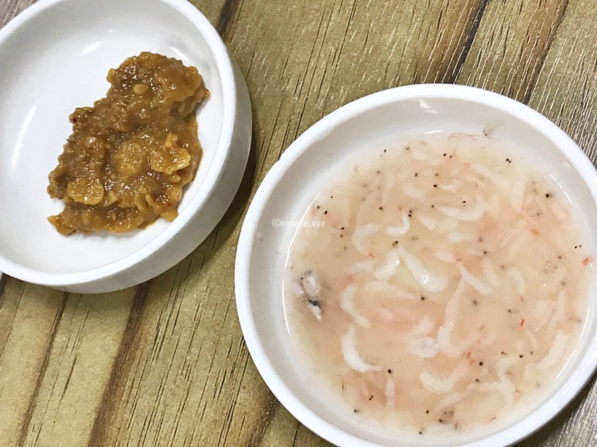 부추랑 된장, 새우젓입니다. 돼지국밥에는 소금보다는 새우젓입니다.