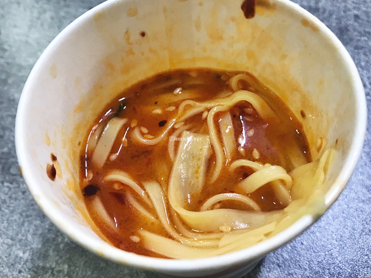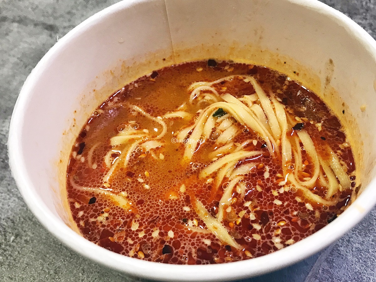 아마 마라탕을 좋아하신다면, 혹은 베트남 쌀국수를 잘 드신다면 이 정도 향이야 무난하게 즐기실 수 있을 거 같네요. 기름이 살짝 떠있는데 고기 향도 확 배어올라오는 게 역시 탄탄면이 컵라면으로 매우 잘 구현이 되었구나 하는 것도 아실 수가 있으실 거예요.