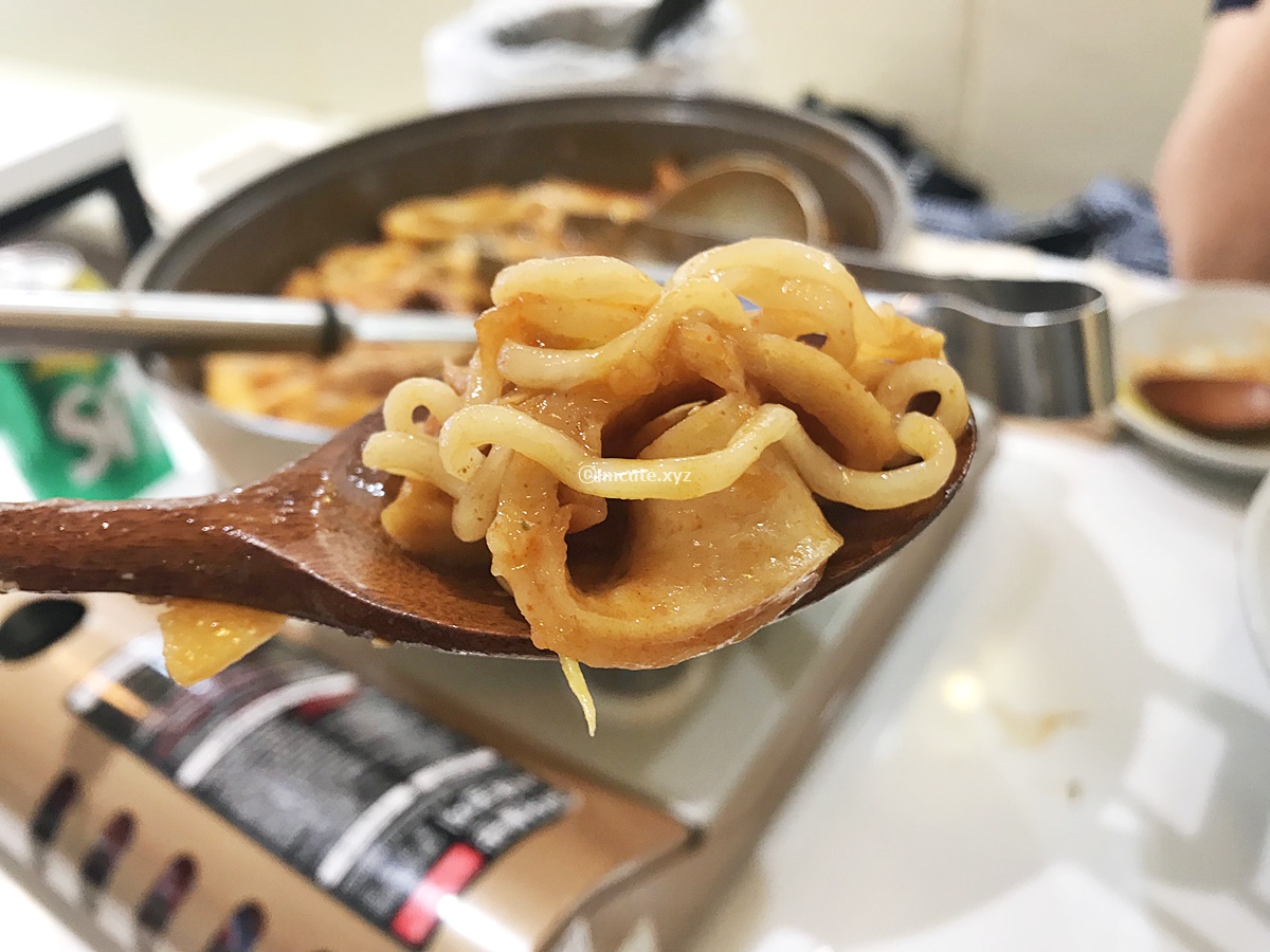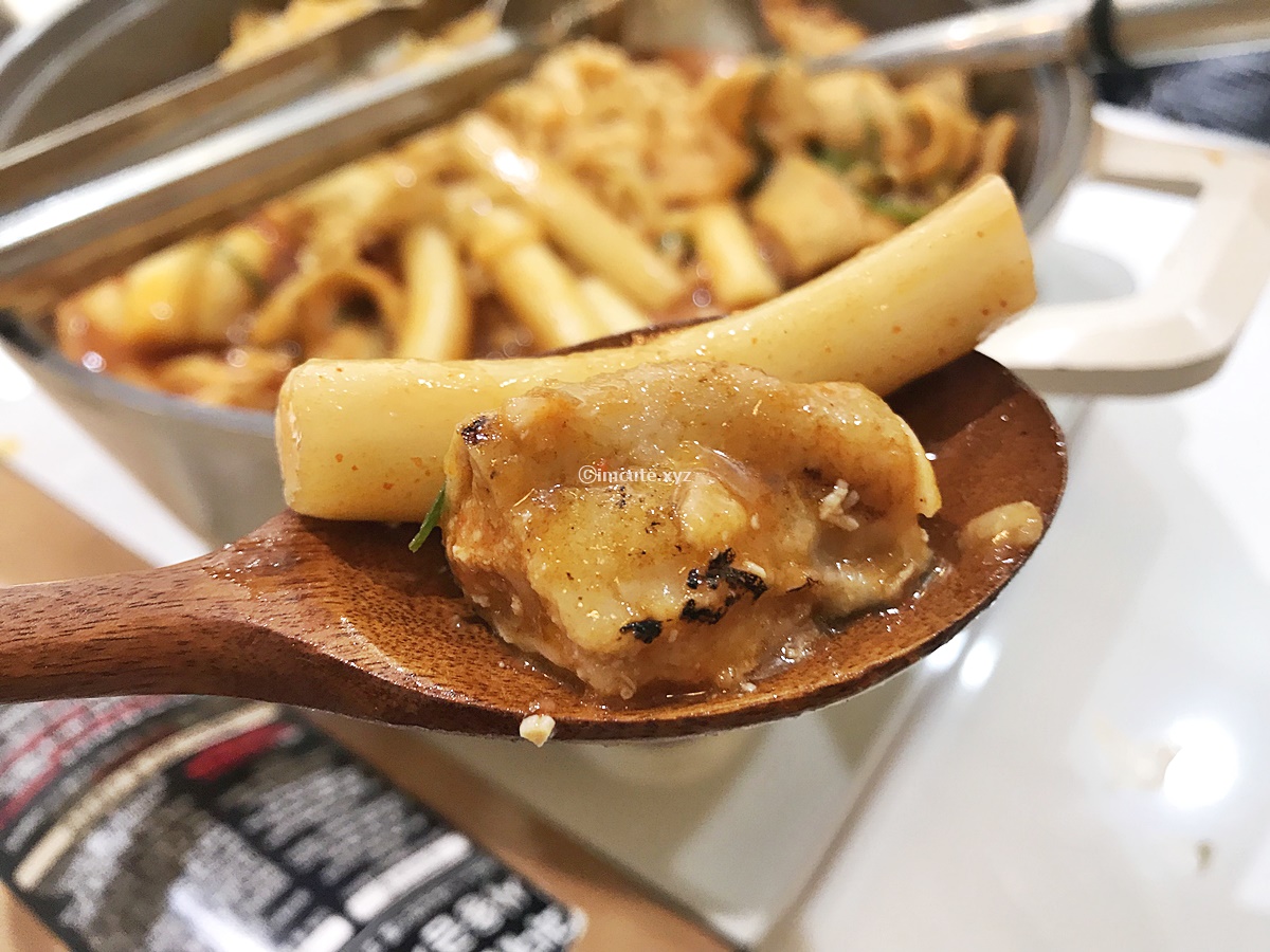 요렇게 집게로 건져올려 보았는데요 떡이랑 우동 그리고 라면에 쫄면이 다같이 보이니까 기분이 좋아지더라고요. 곱창도 국물에 푹 익으니까 소향기가 솔솔 나서 고기가 좀 들어가니 더욱 풍성한 떡볶이의 맛이 났답니다.