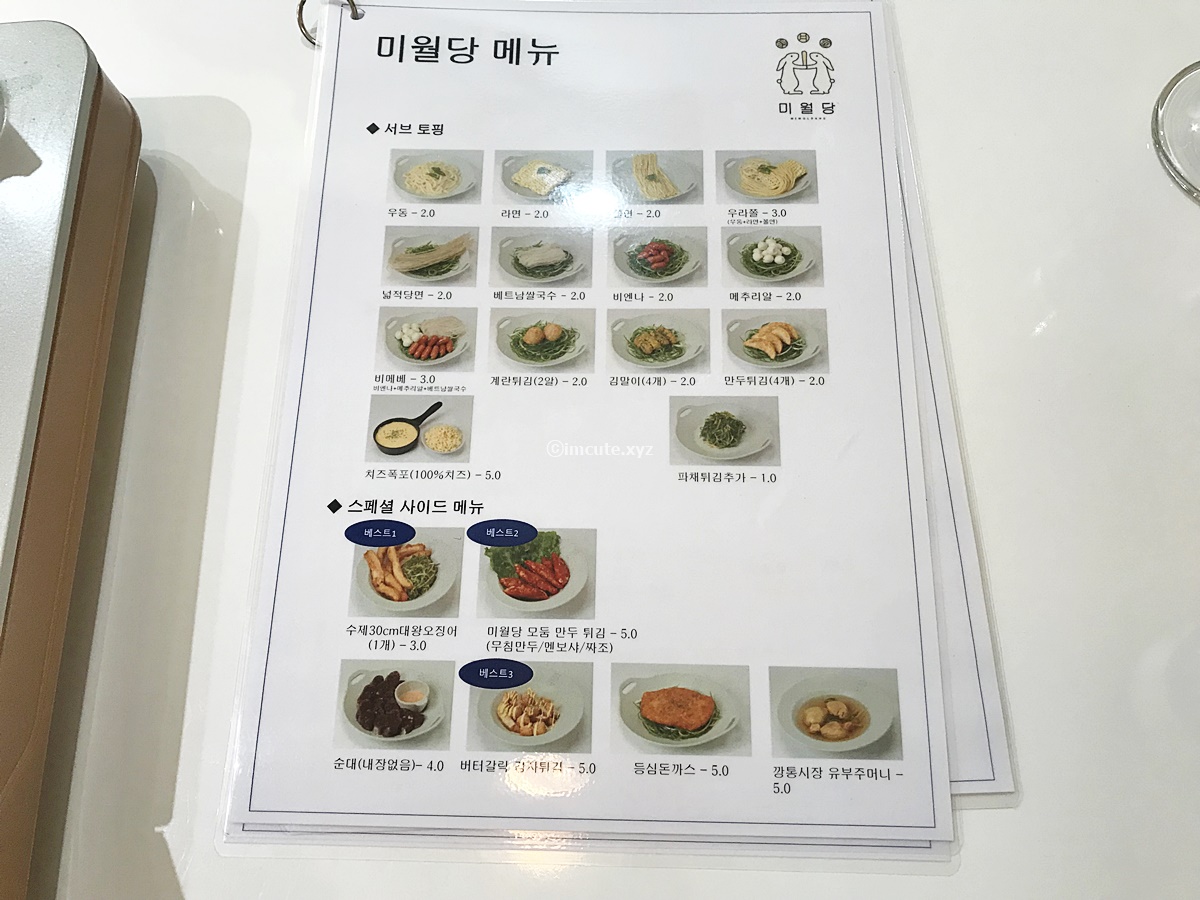 서브 토핑도 여러가지가 있었는데요 우라쫄이 정말 맛나 보이더라고요. 우동+라면+쫄면이라니 . 잡작당면도 먹고싶고 베트남 쌀국수도 땡겼는데 참았어요. 스페셜 사이드 메뉴로 대왕오징어 튀김을 골랐는데요 무려 30cm이라 하니 엄청나죠?