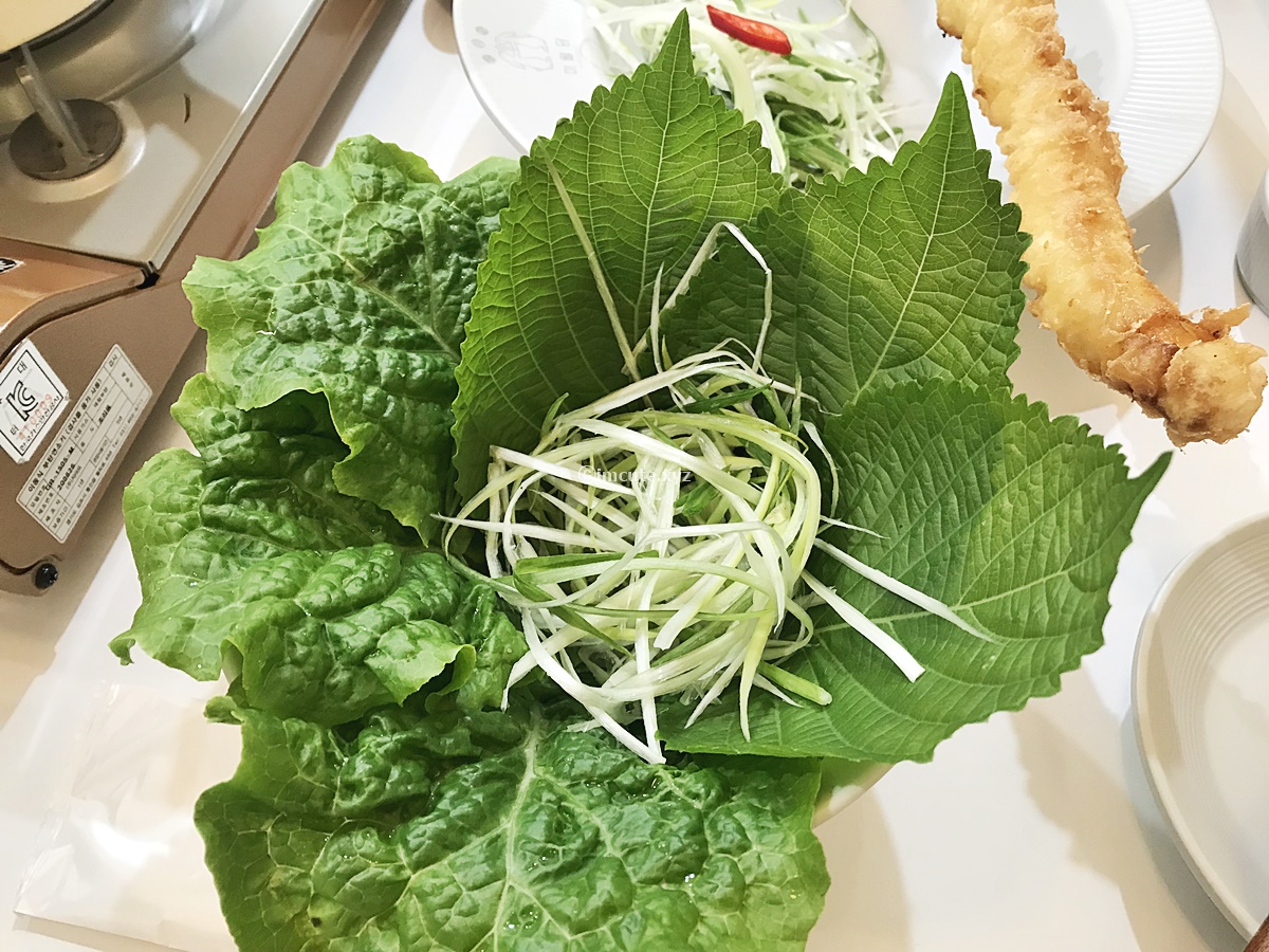떡볶이에 쌈을 싸 먹을수 있게끔 쌈채소와 파채가 나왔습니다. 아마 곱창을 싸 먹으라고 하는 듯~