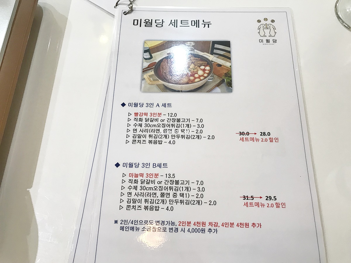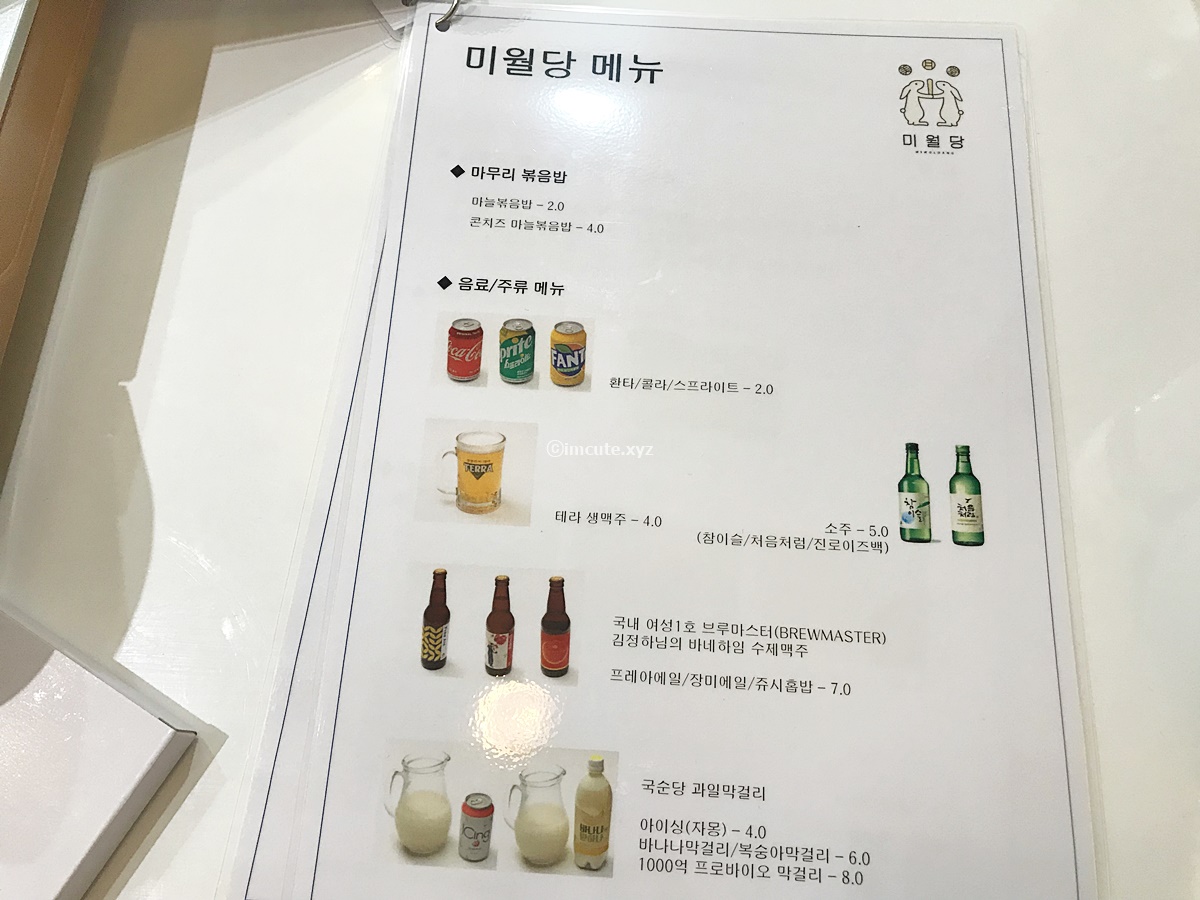 미월당 메뉴