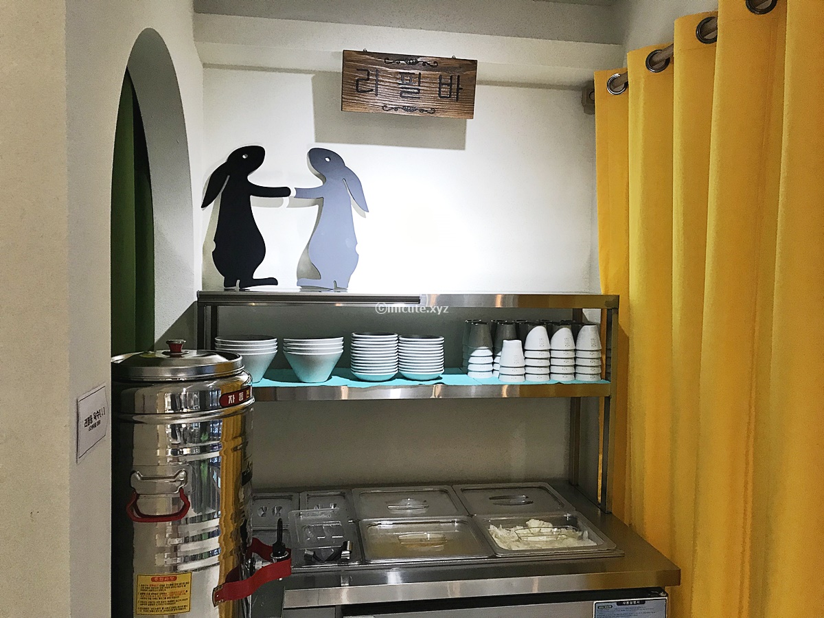 거의 무제한 떡볶이집 수준이었는데요 오뎅, 떡은 리필바에서 먹을수 있더라고요. 정말 훈훈하죠? 미월당의 토끼들이 "이거 다 먹어~"하면서 반겨주는 거 같았어요.