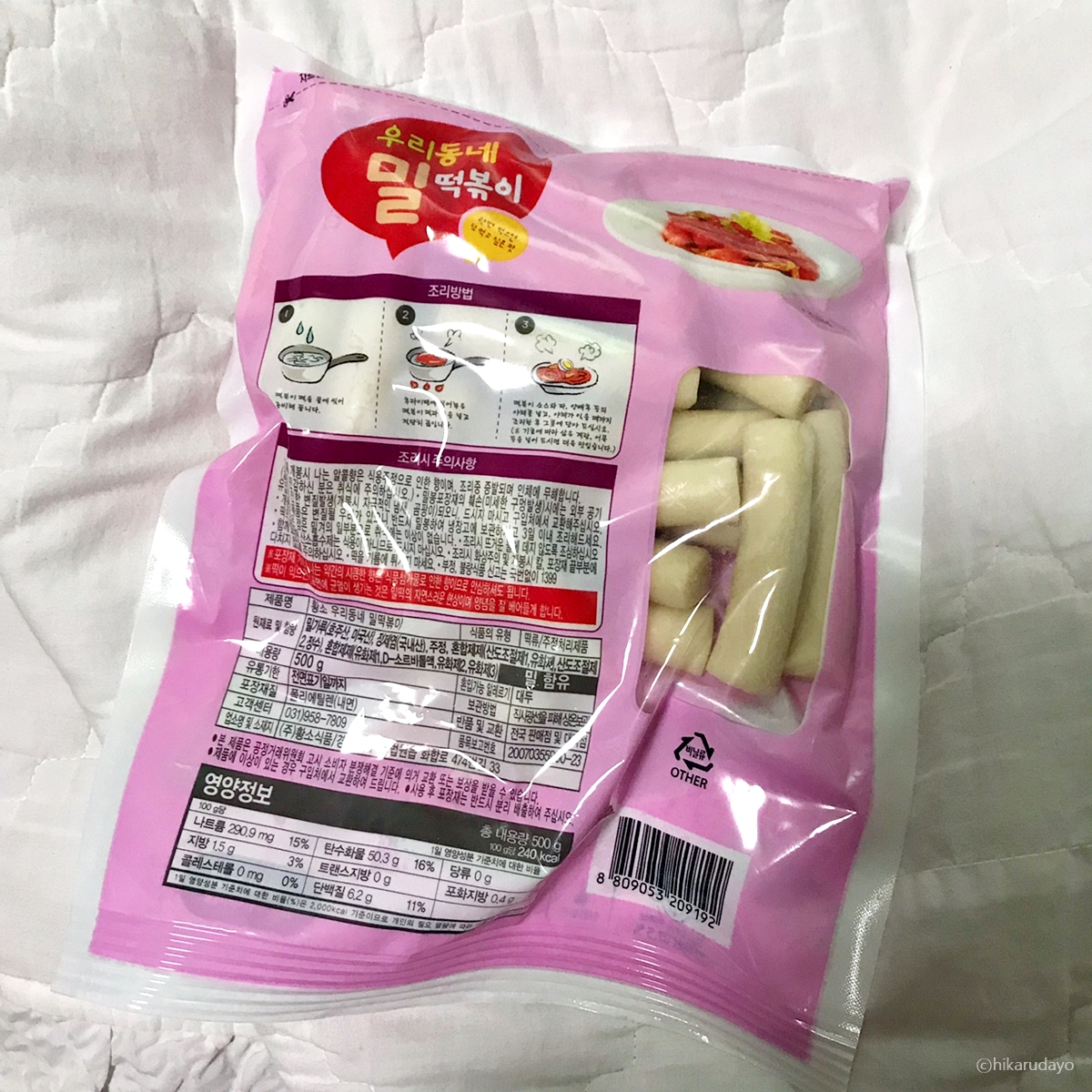 마트에서 공수했고요 영양정보는 500g에 1200kcal입니다. 뭔가 밀떡이 더 쫀득해서 떡볶이 해먹을때 선호하는 편인데요 꼭 떡볶이를 해서 먹지않아도 라면에 넣어먹는게 이렇게 괜찮은지는 미처몰랐었네요. ㅎㅎㅎ