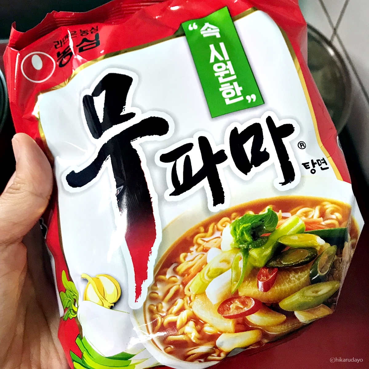 무파마 라면이랑 끓여주기로 했어요. 코로나19사태가 터져서 제가 좋아하는 신라면이랑 오짬같은건 거진 품절이었고 이렇게 무파마로다가 사와봤는데요, 인기가 없는거지만 아빠는 거의 흰국물 라면만 드셔서 집엔 부드러운 라면이 많답니다. 사골국물 사리라든지요. 이래저래 무국과 마늘, 파의맛이 담긴 무파마 라면이라도 있으니 본격적으로 이거랑 먹어볼까 해요. 신라면 블랙맛이랑 좀 비슷한거 같기도 하고(...) 여튼 같이 투척해서 끓여주었답니다. 이것이 저의 떡라면 레시피라는거! 아주 쉽고 간단하죠? 뭐 요리랄 것도 없습니다만.
