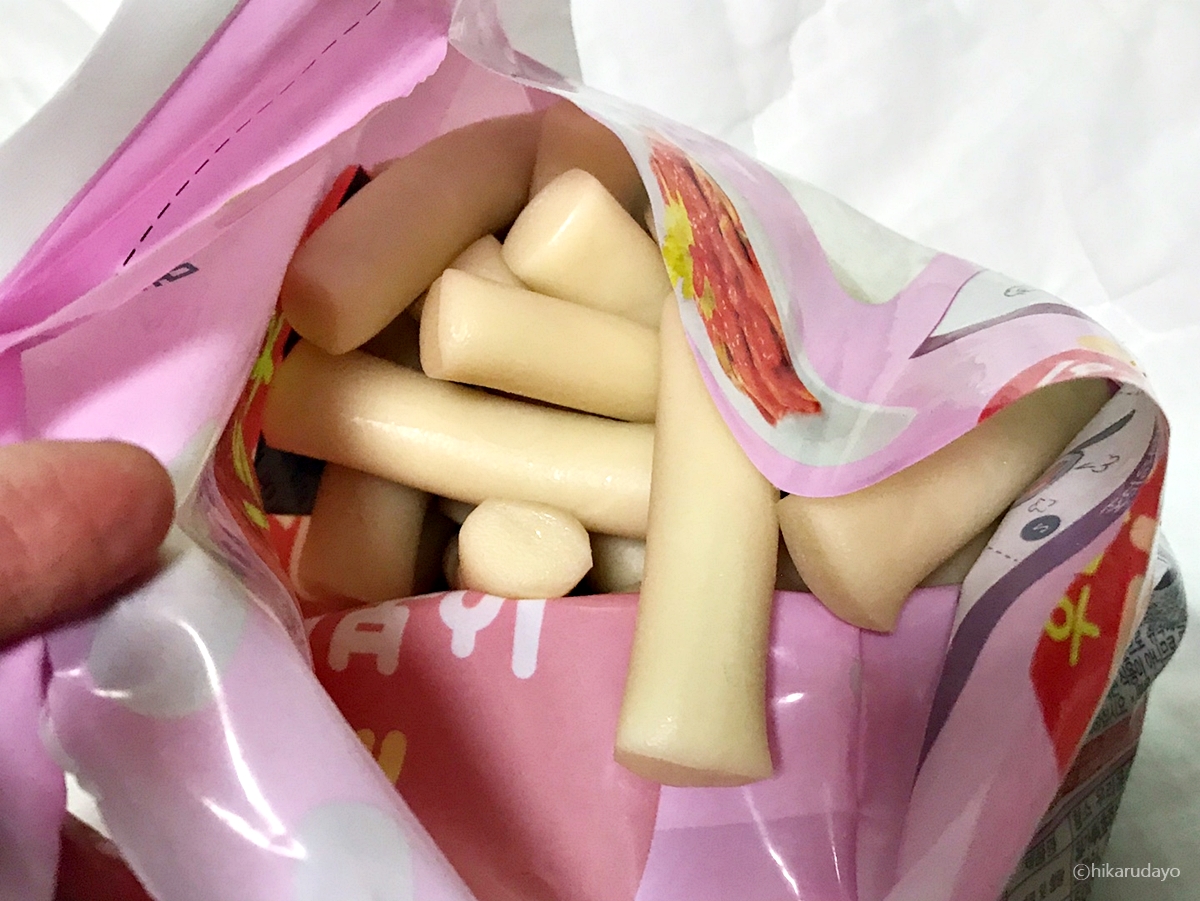 밀떡볶이의 떡을 하나 까보았습니다. 냉장이 되어있어서, 굳어서 나왔네요. 어쩔 때 떡을 갓 뽑았을때 사면 쫀득함이 남아있곤 한데 말이죠. 아무튼 그래도 견고하게 굳어있었고 또 상태도 좋았는데요, 남은건 냉동하시거나 냉장실에 며칠 보관하고 드셔도 된답니다. 떡은 그렇게 금방 상하진 않아서요. 얼려두면 유통기한이 꽤 많이 늘어나서 저는 얼려뒀다가 해동하고 그때그때 먹곤한답니다.