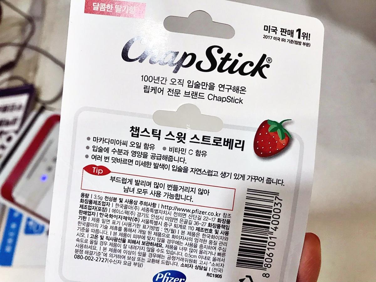 챕스틱 스윗 스트로베리가 정식명칭인거 같고요, 한국화이지제약 이 화장품책임판매업자라고 되어있는 립밤이라고 하네요. 화장품제조업자는 한국콜마 주식회사랍니다.