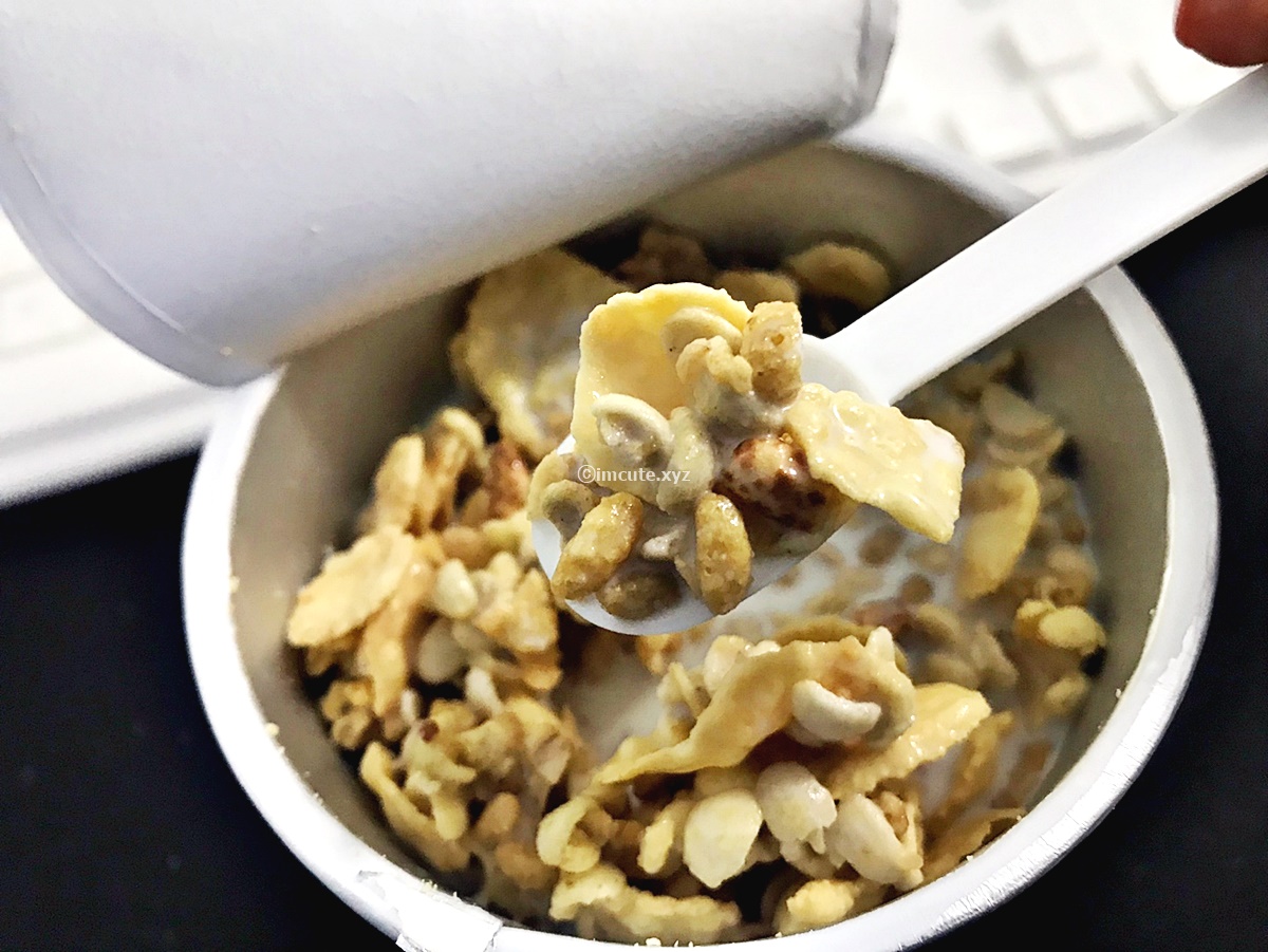 와우! 정말 맛있습니다. 우유 자체가 살짝 달달해서, 이렇게 불려 먹으니까 근사한 한끼 식사가 되더라고요. 게다가 달지 않으면서도 씹으면 씹을수록 느껴지는 곡류자체의 꼬소함이 아주 일품이었습니다. 단백질 많이 들어있는 음식들을 많이 찾아먹어봤지만 다 맛이 없어서 안 먹는데, 켈로그 프로틴 그래놀라만큼은 예외입니다.