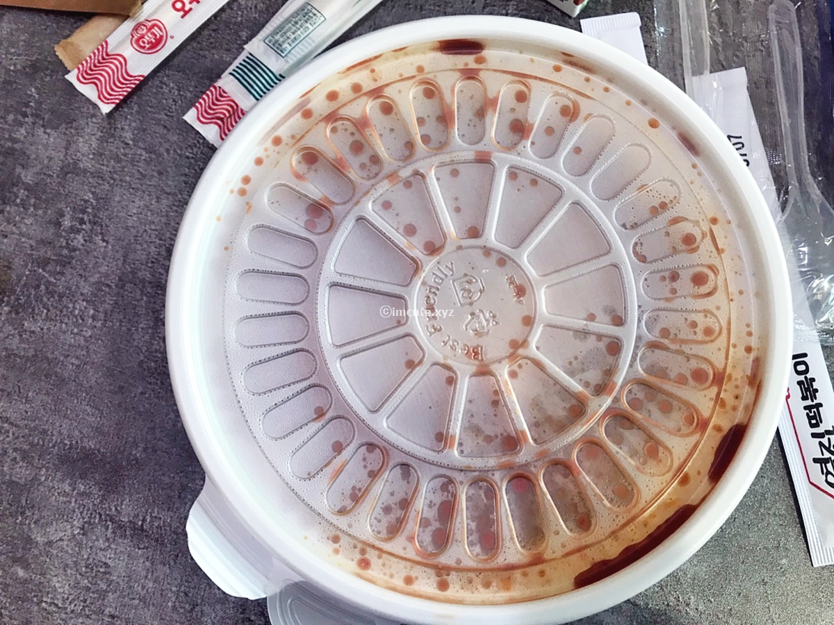 위에 치즈도 많이 들어있습니다. 엽떡이랑은 조금 달리 좀더 텁텁하고 고춧가루가 많은 으른으른한 맛이면서도, 기본 소스 베이스가 단맛도 강하더라고요. 이 국물엔 필수적으로 라면사리가 들어가면 좋을거 같습니다.