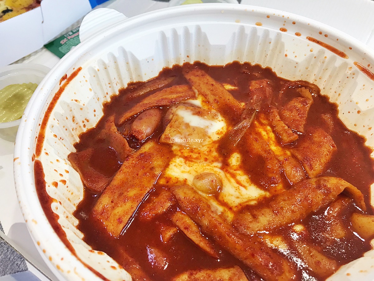 다르게 찍어보았는데 빛의 문제인지 이건 사진이 좀더 밝게 나왔습니다. 빨간 국물은 구미를 돋우어 줍니다. 옆집떡볶이라는 이름처럼 굉장히 정겹고 또 레트로한 길거리 떡볶이 국물이 생각납니다. 마치 거리에서 떡볶이 아줌마가 많이 담아주시는 그런 찐한 국물맛 있지요. 그런 느낌이 가미되어 있습니다.