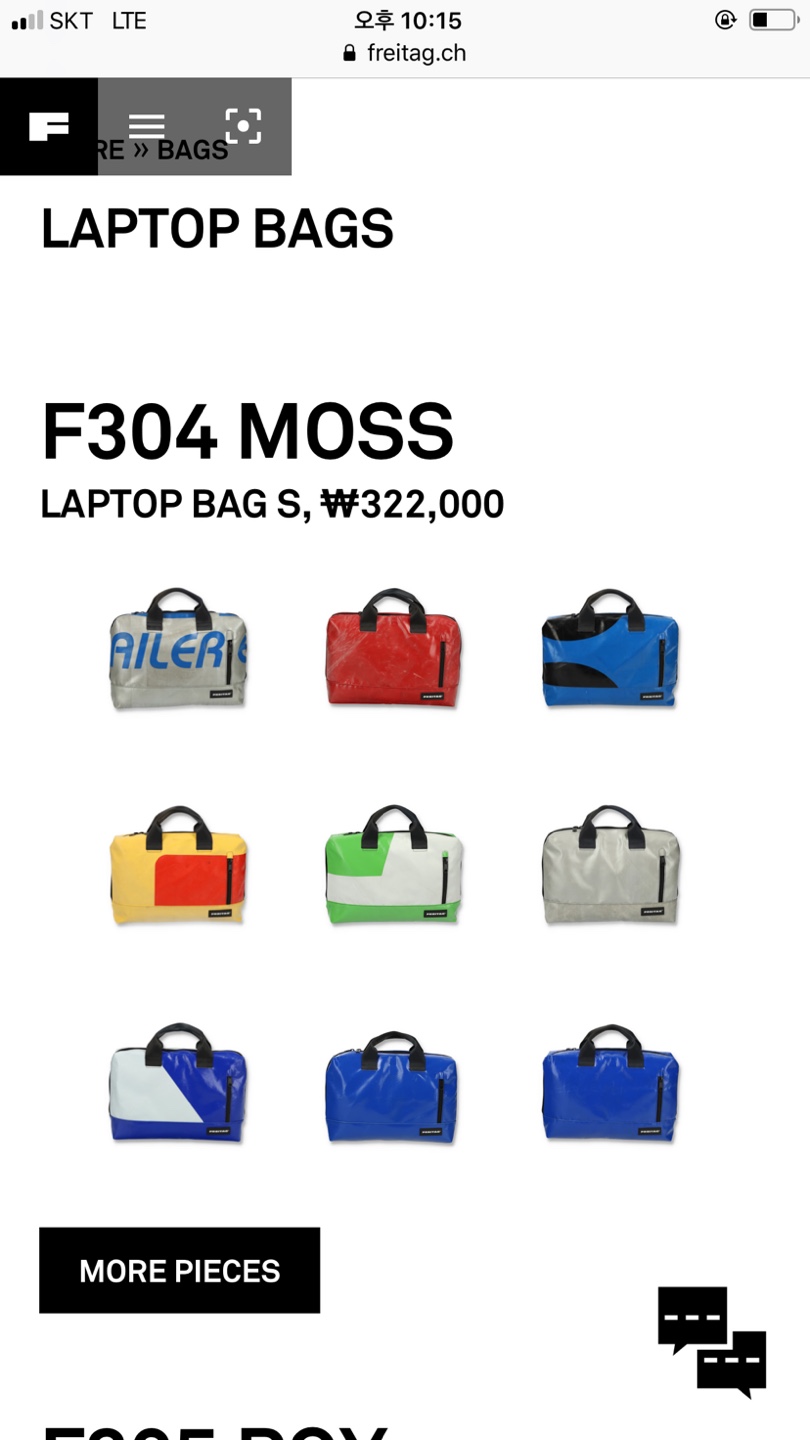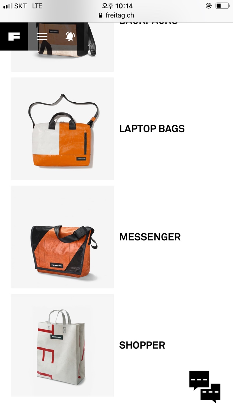 가방은 유니크한 유럽 감성을 담아 여러가지 모양이 있습니다. 백팩, 메신저백, 노트북가방(랩탑백), 트래블백, 스포츠백, 악세사리 등이 있어요. 실제로 제 지인은 동전지갑도 프라이탁 제품을 쓰시더라고요. 프라이탁은 스위스 브랜드라고 합니다.