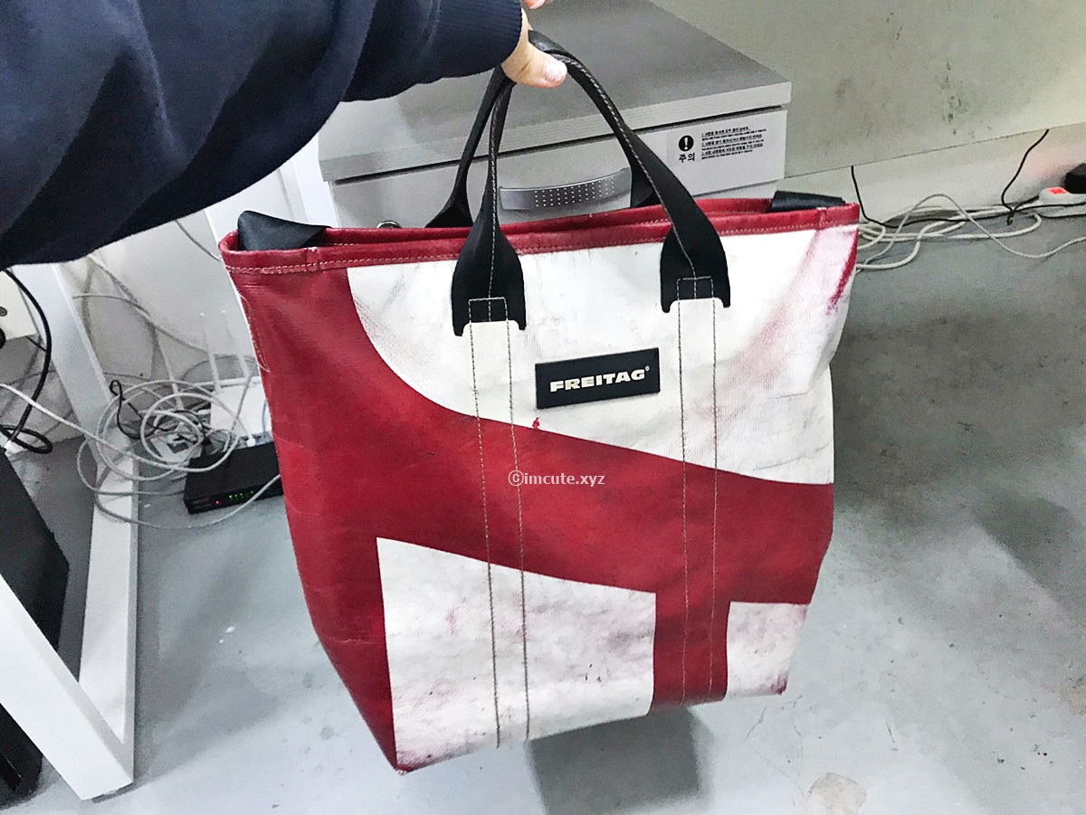 밥과 리랜드는 이런식으로 손잡이가 달려있습니다. 제 것은 아니고 지인 가방인데요 찍어도 된다고 허락을 맡아서 이렇게 찍어봅니다. 어차피 이 가방 보여드려도 똑같은 가방은 절대 구하실 수가 없을 겁니다. 왜냐면 프라이탁의 모든 제품에는 똑같은게 없거든요. 천편일률적으로 같은 천에 만드는것이 아니라 다른 재질을 가진 원자재로 제품을 만들기 때문에 유니크한 감성까지 느낄 수가 있답니다. 프라이탁 가방 가격은 크기에 따라 가격이 20만원대 이상부터 30만원대를 호가하니 결코 저렴한 것만은 아닙니다.