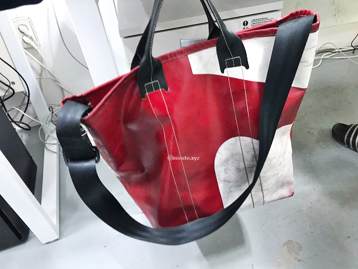 밥과 리랜드는 이런식으로 손잡이가 달려있습니다. 제 것은 아니고 지인 가방인데요 찍어도 된다고 허락을 맡아서 이렇게 찍어봅니다. 어차피 이 가방 보여드려도 똑같은 가방은 절대 구하실 수가 없을 겁니다. 왜냐면 프라이탁의 모든 제품에는 똑같은게 없거든요. 천편일률적으로 같은 천에 만드는것이 아니라 다른 재질을 가진 원자재로 제품을 만들기 때문에 유니크한 감성까지 느낄 수가 있답니다. 프라이탁 가방 가격은 크기에 따라 가격이 20만원대 이상부터 30만원대를 호가하니 결코 저렴한 것만은 아닙니다.